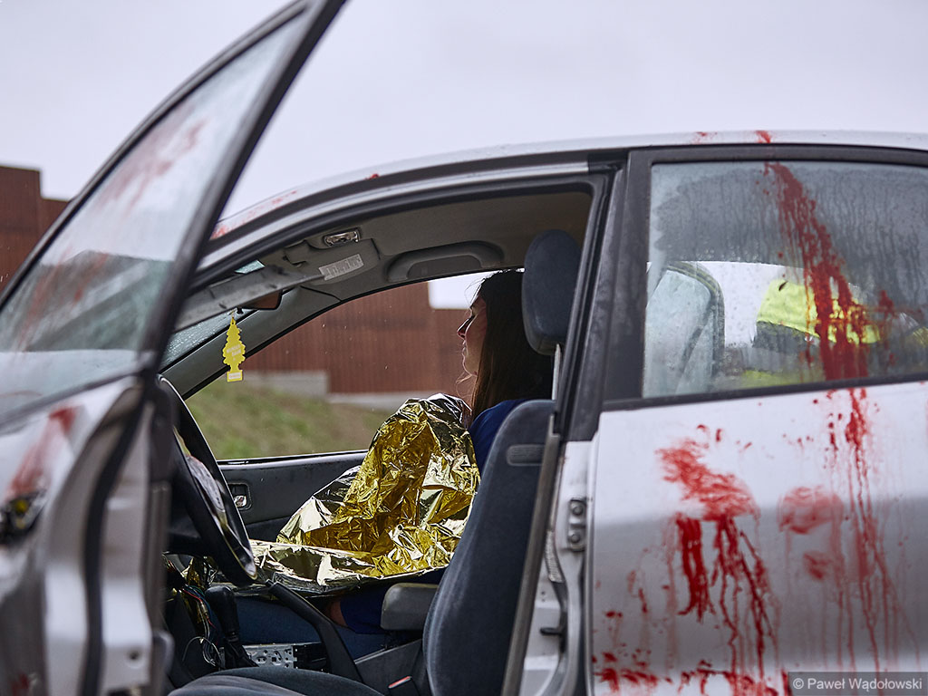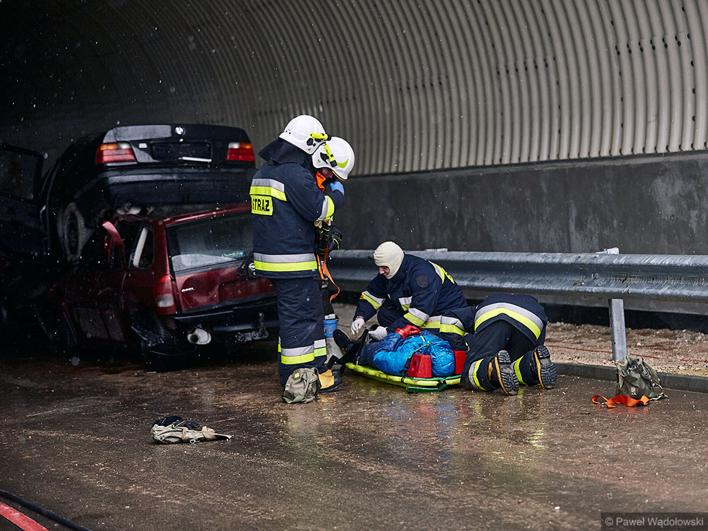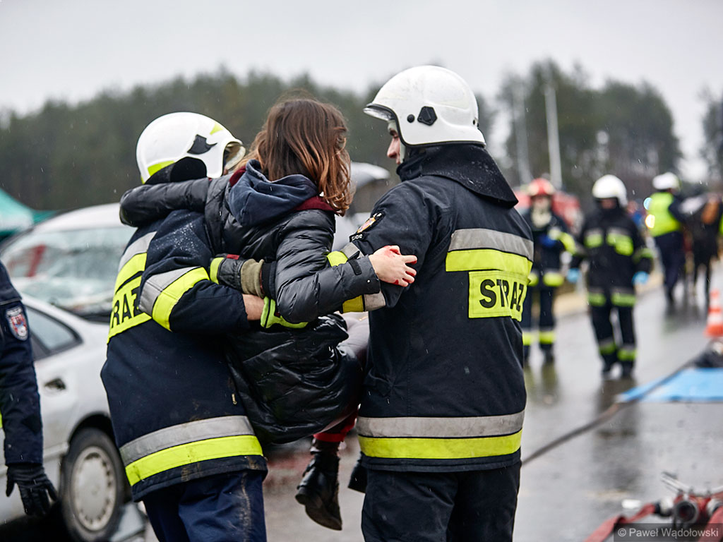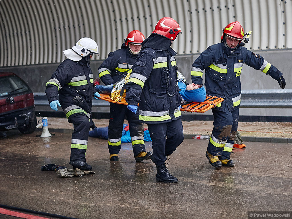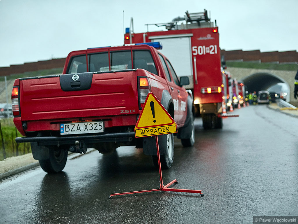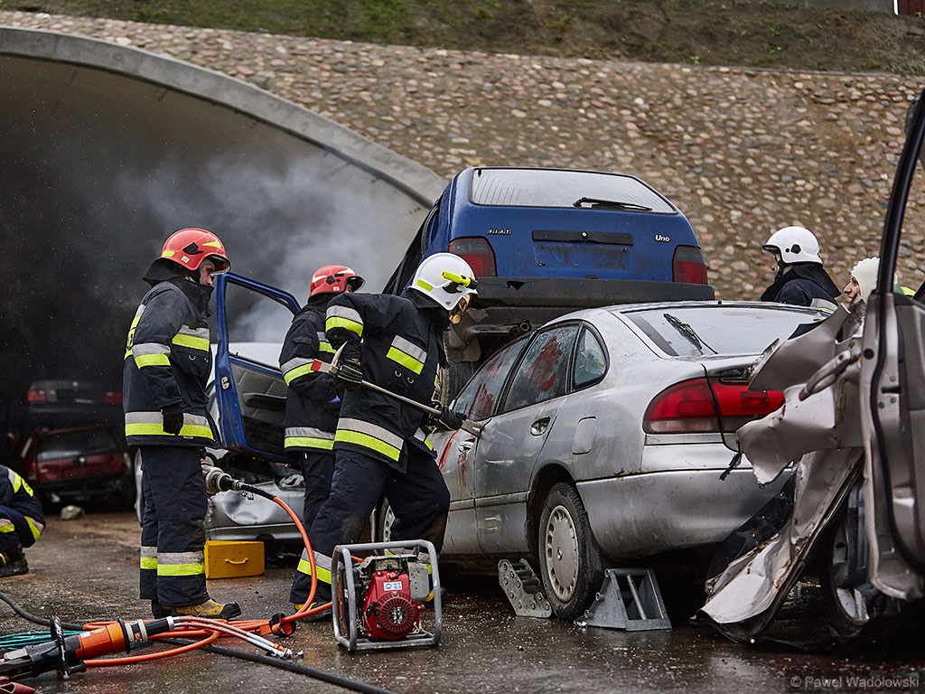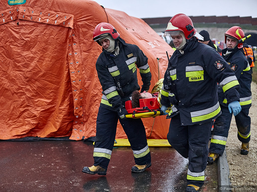 Karambol na drodze ekspresowej, w którym bierze udział 7 samochodów i rannych jest kilkadziesiąt osób - taki scenariusz ćwiczyli w poniedziałek (14.11) podlascy strażacy, policjanci i ratownicy na drodze S8 koło Szumowa.