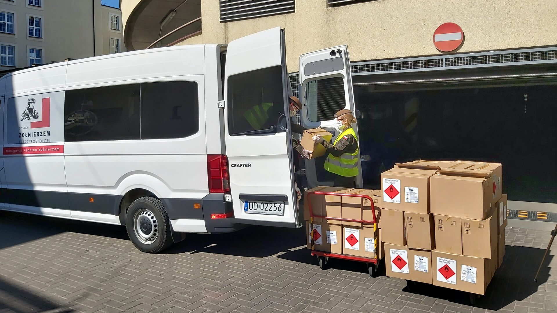 Kolejny - już 9. transport środków ochrony osobistej dotarł z Agencji Rezerw Materiałowych do Podlaskiego Urzędu Wojewódzkiego w Białymstoku. Tutaj jest dzielony i rozwożony po całym województwie przez żołnierzy z 1. Podlaskiej Brygady Obrony Terytorialnej.