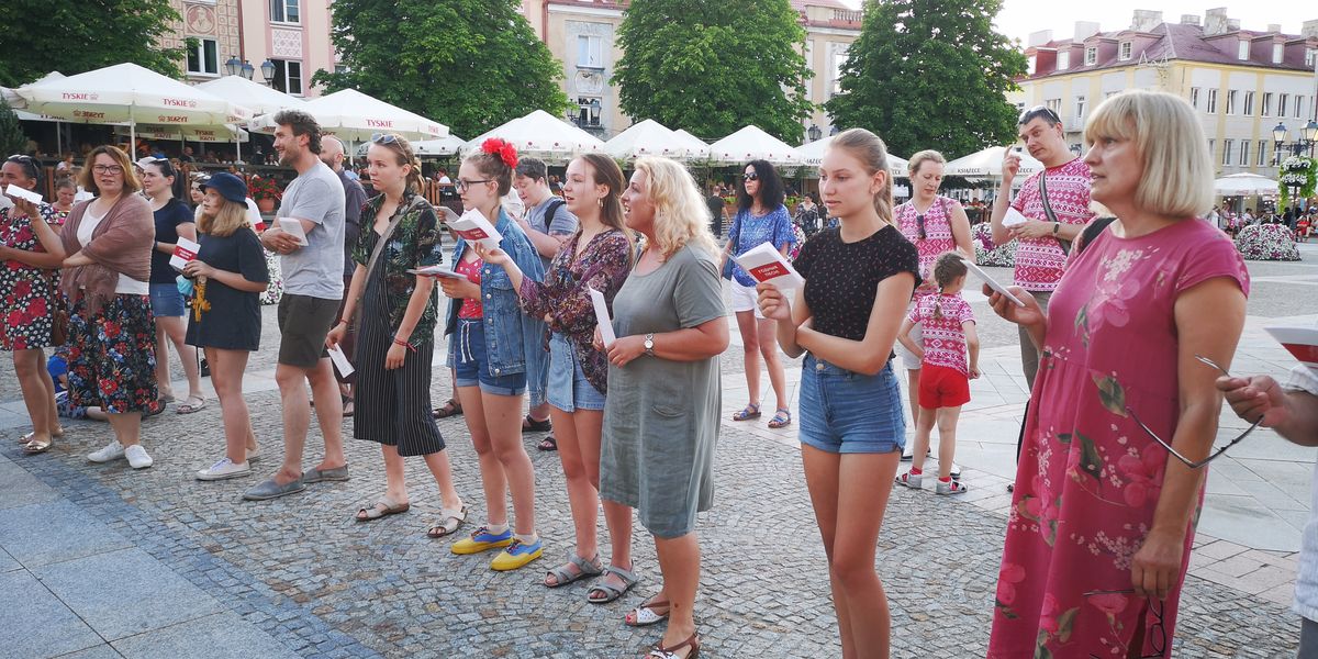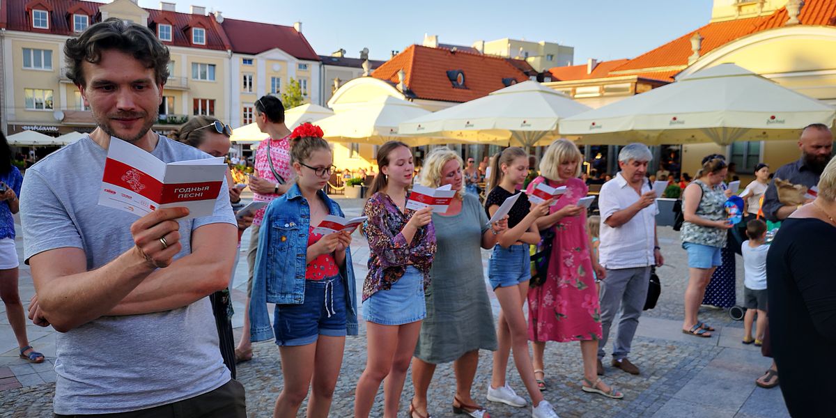 „Kupalinka”, „Hraj”, „Try czarapachi” i „Prostyja słowy” – białoruskie pieśni zabrzmiały na Rynku Kościuszki w Białymstoku. Doskonała pogoda sprzyjała wspólnemu śpiewaniu, które poprowadził Siarhiej Douhuszau – białoruski muzyk obecnie przebywający na emigracji w Polsce, inicjator projektu „Śpiewny schod”, podczas którego można zaśpiewać znane i nauczyć się nowych białoruskich piosenek. Jednak dziś ten projekt ma też szersze znaczenie – zwraca uwagę mieszkańców różnych miast na represje wobec białoruskiej kultury. W audycji „Pad znakam Pahoni” relacja ze „Śpiewnego schodu” w Białymstoku, który odbył się w ramach Międzynarodowego Tygodnia Kultury Białoruskiej.