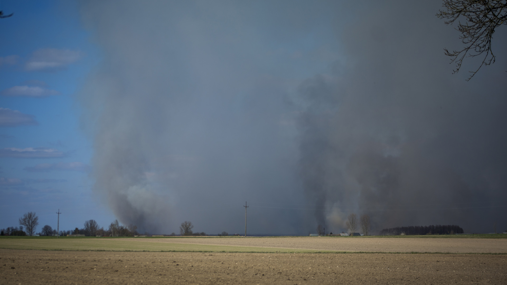 Jako jedne z pierwszych paliły się bagienne łąki i lasy w rejonie Polkowa, Dolistowa Starego. Pożar rozciągał się na linii Kopytkowo - Grzędy Dolistowo. Snopy dymu było widać z kilkunastu kilometrów od strony Goniądza.