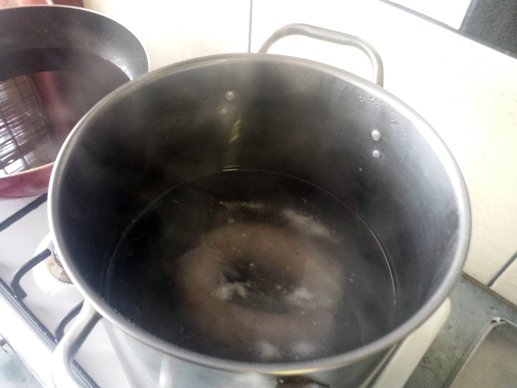 Mięso przygotowujemy dzień przed nadziewaniem go do jelit. Część mięsa z elementami tłustymi i słoniną mielimy przez sitko o grubych oczkach. Drugą część kroimy w dość dużą kostkę. W szklance zimnej wody rozpuszczamy sól (na 5 kg mięsa 6 łyżeczek soli i 3 łyżeczki cukru). Wlewamy to do miski z mięsem. Długo mieszamy, aż pojawi się tzw. klej. Na całą noc odstawiamy do lodówki. Na drugi dzień oddajemy czarny pieprz i gorczycę (zmiażdżoną w moździerzu). Jeśli mięso jest za mało doprawione, to znowu można dodać wodę z rozpuszczoną solą i cukrem. Następnie mięsem nadziewamy wymoczone wcześniej jelita. Tak przygotowaną kiełbasę gotujemy lub pieczemy. Podajemy z sosem.