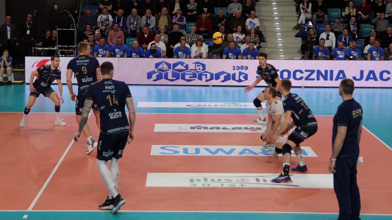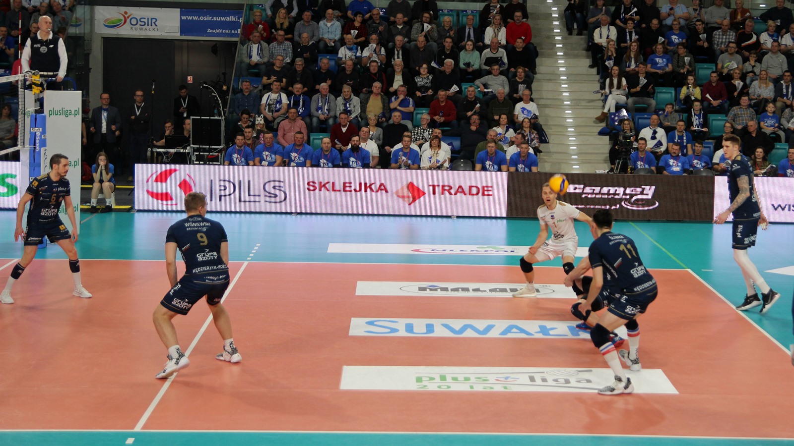 Pierwsza "szóstka" Ślepska Malow Suwałki na spotkanie z mistrzem Polski wyglądała tak samo jak w starciach z Vervą Warszawa i Jastrzębskim Węglem. Na parkiet wyszli: Kevin Klinkenberg, Nicolas Szerszeń, Bartłomiej Bołądź, Cezary Sapiński, Andreas Takvam, Joshua Tuaniga, na libero Paweł Filipowicz i Adrian Stańczak.