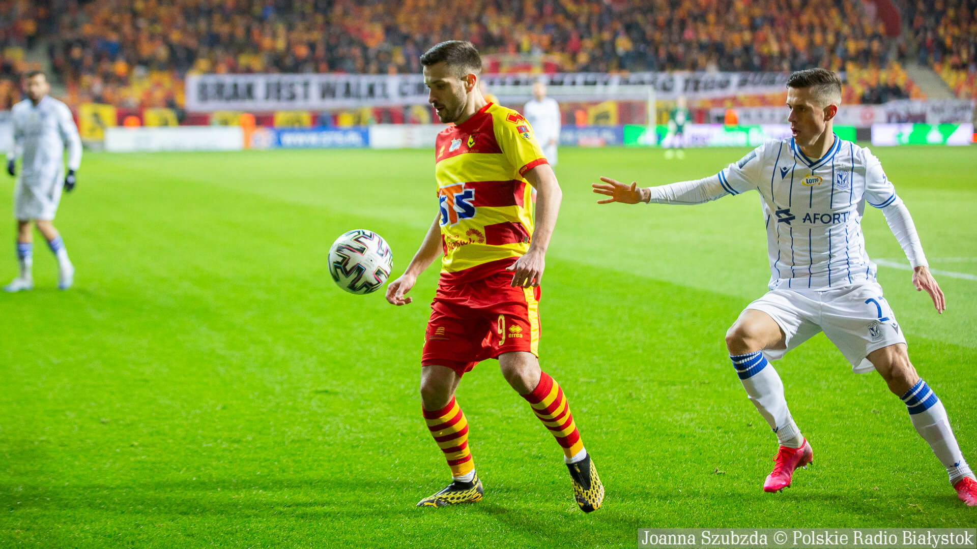 Jagiellonia Białystok zawiesiła we wtorek (13.10) sprzedaż biletów na sobotni mecz piłkarskiej ekstraklasy z Lechem Poznań. Chodzi o to, że jeśli miasto znajdzie się w strefie czerwonej, związanej z pandemią koronawirusa, spotkanie będzie rozegrane bez udziału publiczności.