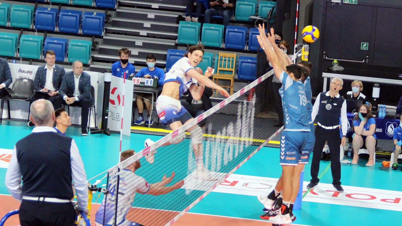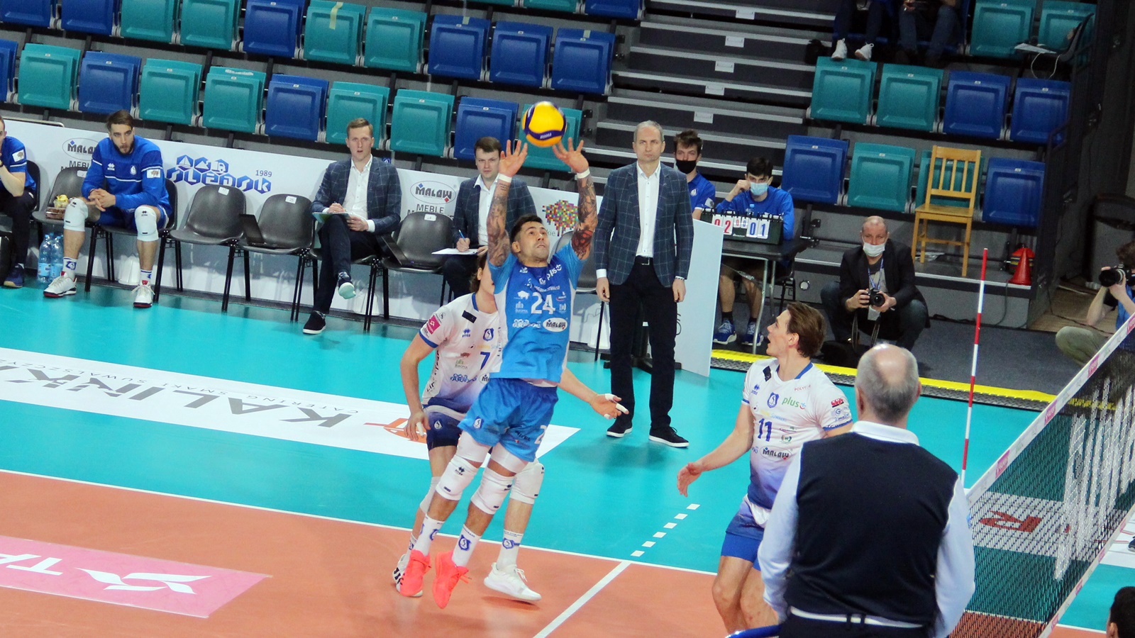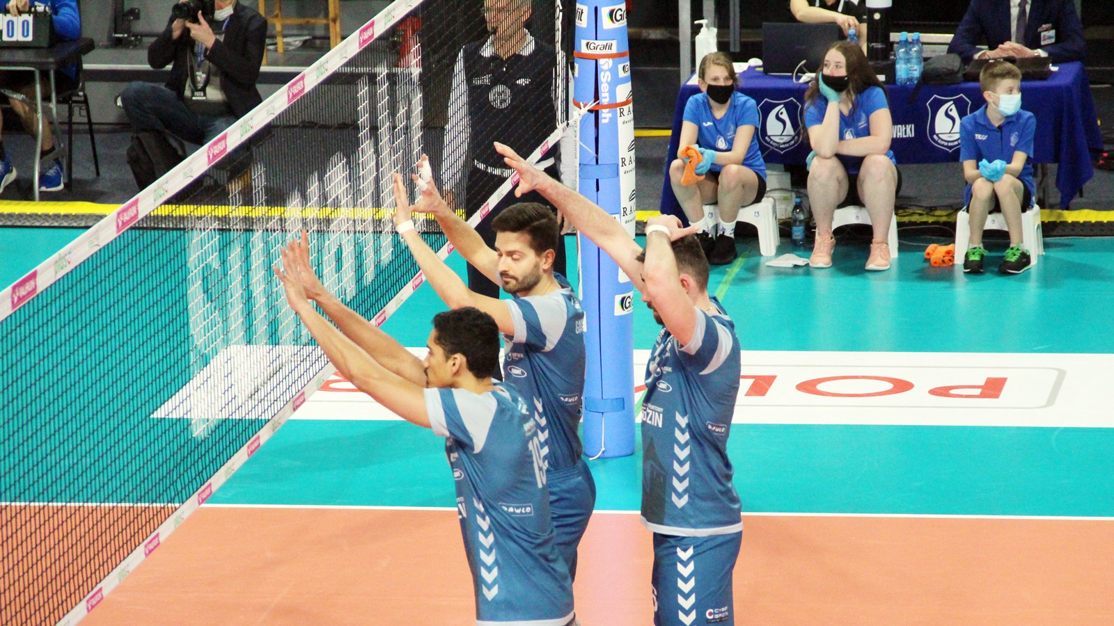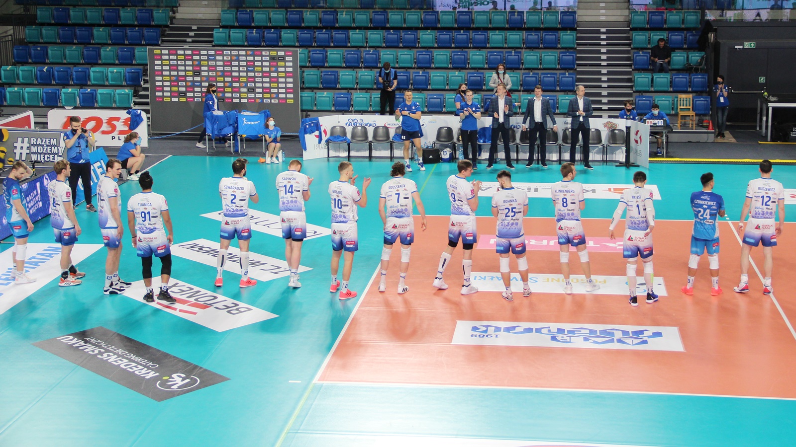 Ślepsk Malow Suwałki: Waliński (9), Rousseaux (12), Bołądź (17), Takvam (6), Sapiński (5), Tuaniga (1), Czunkiewicz (libero) oraz Szwaradzki, Rudzewicz.