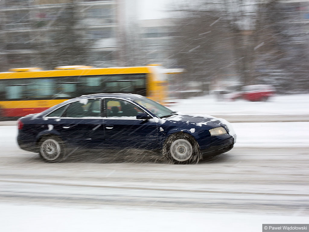 Białe drogi są również w miastach. Na przykład w Łomży pracują wszystkie pługi i posypywarki, ale padający śnieg uniemożliwia oczyszczanie ulic - tłumaczą przedstawiciele miejskiej spółki odpowiedzialnej za odśnieżanie ulic w Łomży.