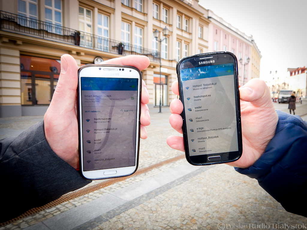 W centrum Białegostoku można bez problemu zalogować się do niezabezpieczonych sieci bezprzewodowych. Kamil Kalicki i Andrzej Ryczkowski sprawdzali to na swoich telefonach komórkowych. Na Rynku Kościuszki do miejskiego hot-spotu trzeba się co prawda zalogować, ale bez problemu można korzystać z Internetu w "otwartych wifi" udostępnianych przez restauracje, lokale usługowe, prywatnych mieszkańców, czy nawet jeden z banków.