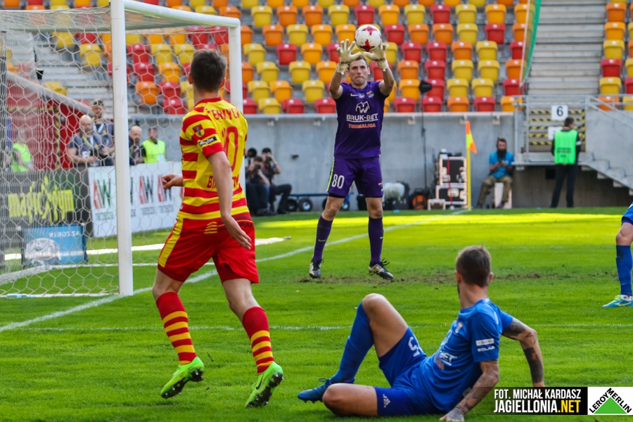 W 78. min sędzia podyktował rzut karny za faul na Piotrze Tomasiku, który wbiegł z piłką w "szesnastkę" gości. Wykorzystał go Sheridan - to pierwsza bramka Irlandczyka w polskiej ekstraklasie. Bruk-Bet próbował jeszcze wyrównać, strzelali Patryk Misak i Sebastian Ziajka, ale Jagiellonia utrzymała zwycięski wynik.