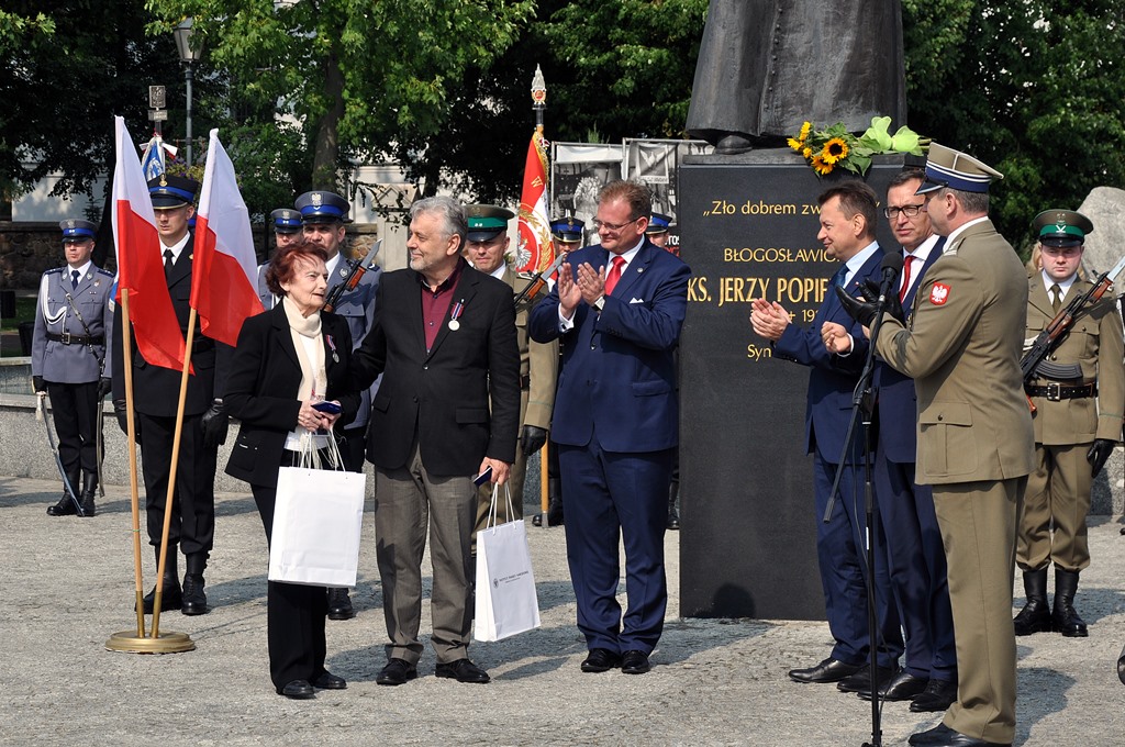 Prezes IPN Jarosław Szarek poinformował, że wystąpi do prezydenta RP o pośmiertne uhonorowanie ks. Popiełuszki Krzyżem Wolności i Solidarności. Także podkreślał, że na początku drogi księdza był "dom, rodzina, ojciec i matka". Mówił, że to "święta kobieta, wzór polskich kobiet" należąca dziś do - jak to ujął - "panteonu polskich kobiet" obok Danuty Siedzikówny "Inki", Anny Walentynowicz, prof. Karoliny Lanckorońskiej, gen. Elżbiety Zawackiej. "Tam jest miejsce dla tej świętej kobiety. Ona wychowała nam tego świętego" - dodał.