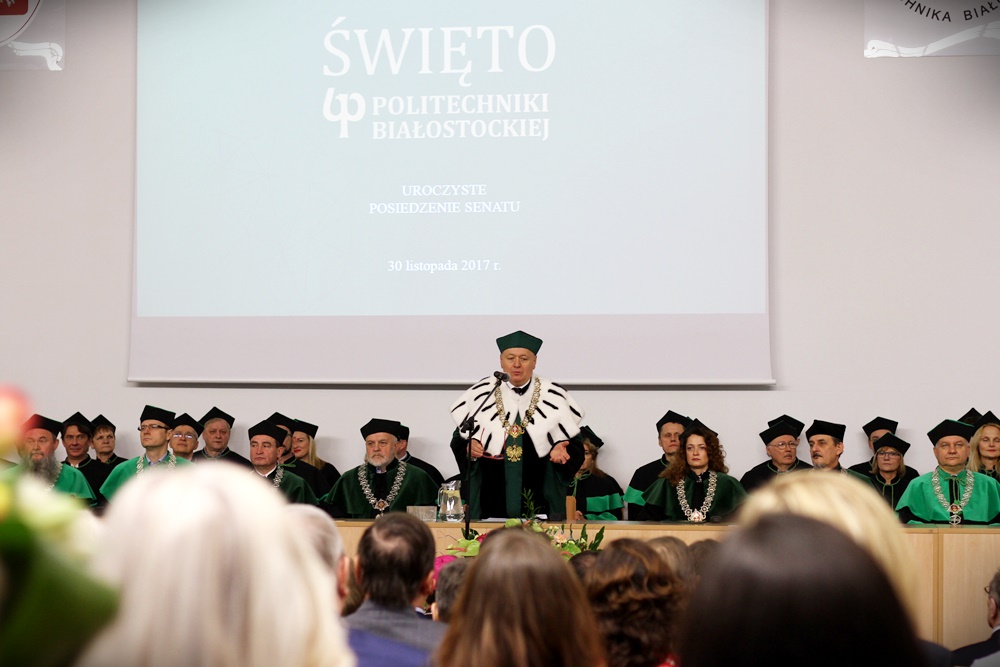 Z tej okazji odbyło się uroczyste posiedzenie Senatu uczelni. Jak mówił rektor prof. Lech Dzienis: "1 grudnia 1949 roku, decyzją ówczesnego ministra oświaty, powołana została Prywatna Wieczorowa Szkoła Inżynierska w Białymstoku. Po 68 latach Politechnika Białostocka jest liczącą się uczelnią w kraju, której studenci zdobywają nagrody w międzynarodowych konkursach".