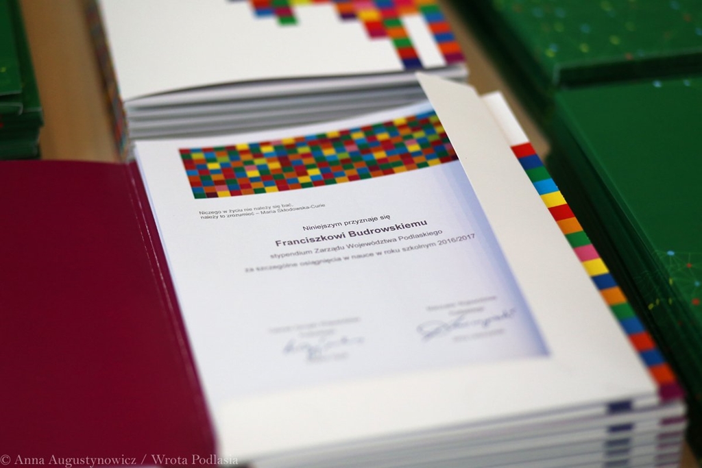 Gratulując wyników, Tadeusz Mosiek z Podlaskiego Kuratorium Oświaty powiedział, że jest pełen podziwu dla zaangażowania i osiągniętych wyników w nauce przez stypendystów. - Bogactwo konkursów, turniejów, olimpiad, w których braliście udział było ogromne, stąd nie było łatwo wybrać tych najlepszych - powiedział Mosiek.