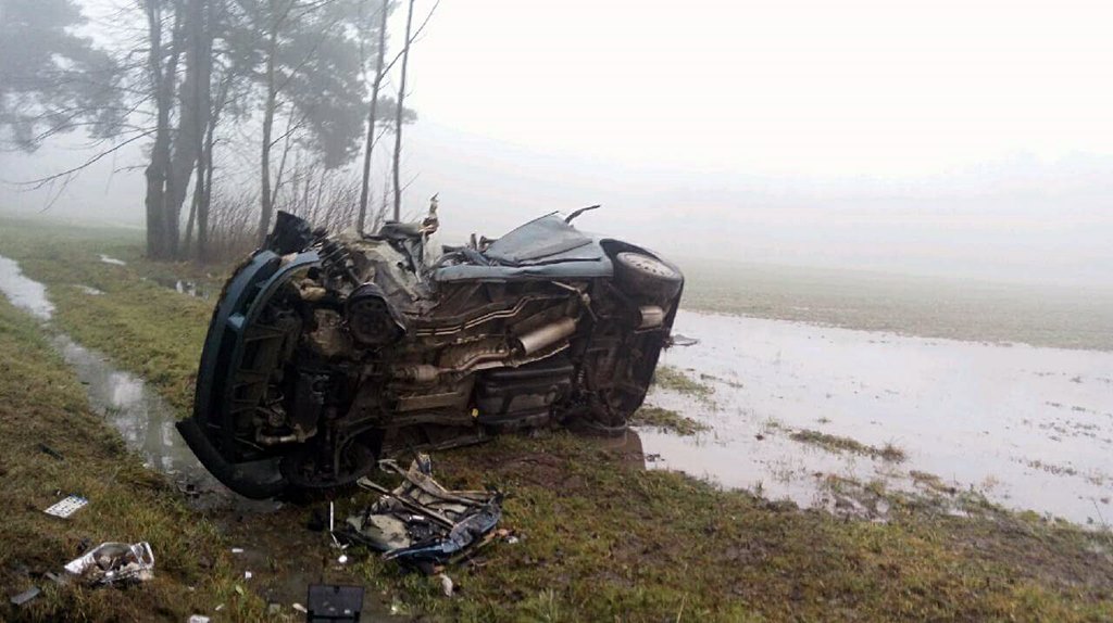 Ze wstępnych ustaleń policji wynika, że kierowca samochodu osobowego wyprzedzał inną osobówkę, wówczas kierowca jadącej z naprzeciwka ciężarówki - chcąc uniknąć zderzenia - skręcił w prawo, zjechał na pobocze, a TiR przewrócił się i wpadł do rowu. Na auto osobowe najechało jeszcze inne auto. Dwie osoby - kierowcę ciężarówki i jednej z osobówek - przewieziono do szpitala.