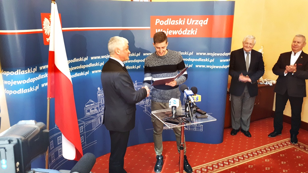 "Zgodnie z ustawą o obywatelstwie polskim, z tą datą pan Taras Romanczuk uzyskał obywatelstwo polskie" - mówił wojewoda gratulując Romanczukowi. Jako nowemu obywatelowi wręczył mu nie tylko potwierdzenie nabycia obywatelstwa, ale też egzemplarz Konstytucji RP, flagę narodową i zasady używania narodowych symboli i hymnu.