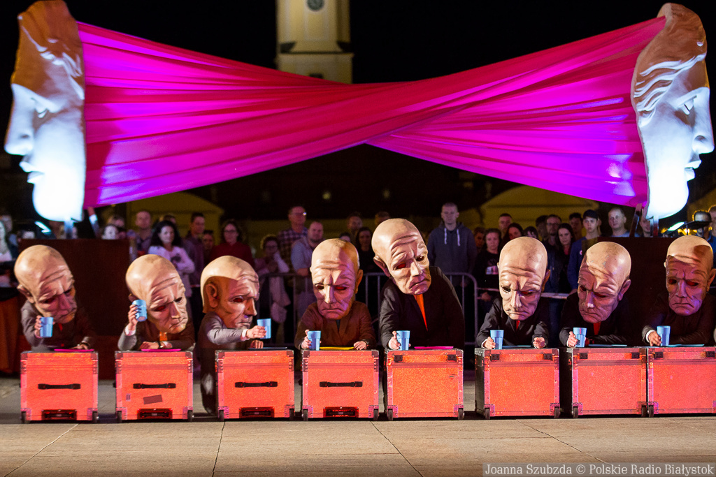 W sobotę w centrum Białegostoku Teatr KTO przedstawił groteskowy moralitet. Aktorzy w wielkich maskach budują szereg z pozoru zabawnych scen, będących w istocie gorzką satyrą na świat współczesnego Everymana, zawieszony pomiędzy domem a korporacją.