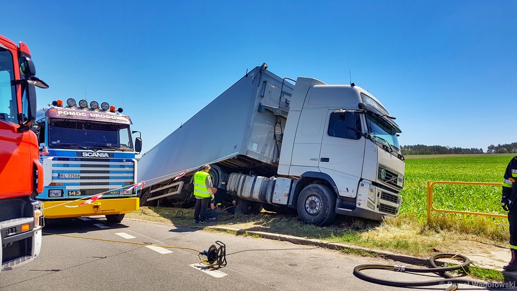 Zablokowana jest droga wjazdowa do Białegostoku od strony Zambrowa. W Łyskach - na wysokości sklepu Kaja zderzyły się samochód osobowy i ciężarówka.