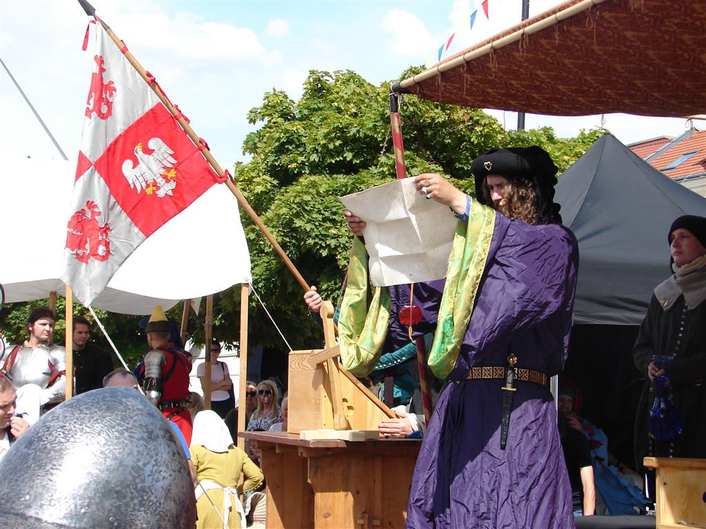 Od 15:00 na Starym Rynku rekonstruktorzy z całej Polski wystawiali scenki historyczne, w tym tę najważniejszą - przekazanie przez księcia Janusza I aktu lokacyjnego mieszkańcom Łomży. Zobaczyć można było także m.in. sąd książęcy, tańce średniowieczne, turniej rycerski, czy pokaz żonglerki flagami.
