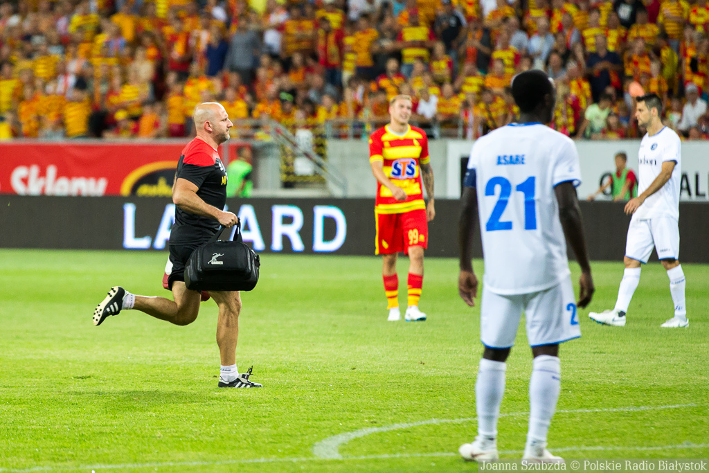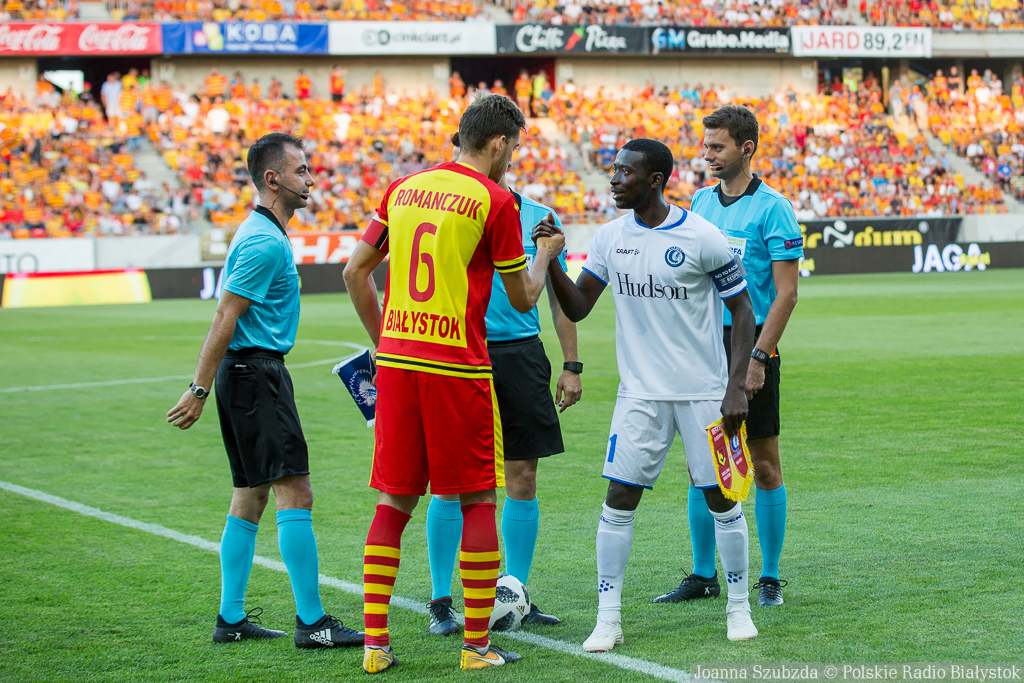 Przewagę w posiadaniu piłki mieli goście, ale Jagiellonia - choć dość głęboko cofnięta - nie pozwala zespołowi z Gandawy stworzyć dogodnej sytuacji bramkowej. W 33. min szansę miał jednak znowu Dompe i znowu z pola karnego przestrzelił.