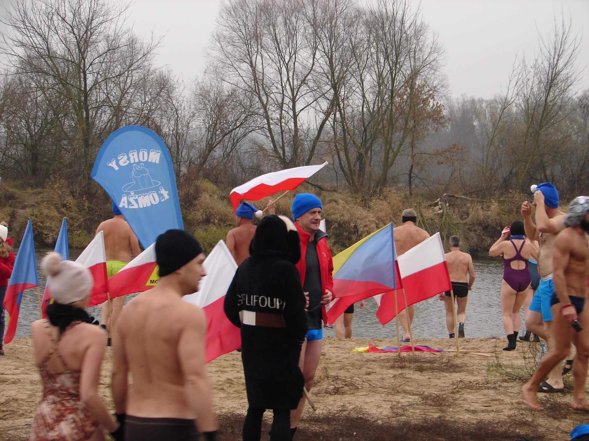 Łomżyńskie morsy uczciły 100. rocznicę odzyskania niepodległości przez Polskę odśpiewaniem hymnu, stojąc po szyję w nurtach Narwi. Przed południem kilkudziesięciu zwolenników wchodzenia nawet do lodowatej wody, spotkało się na plaży miejskiej w okolicach mostu Hubala.