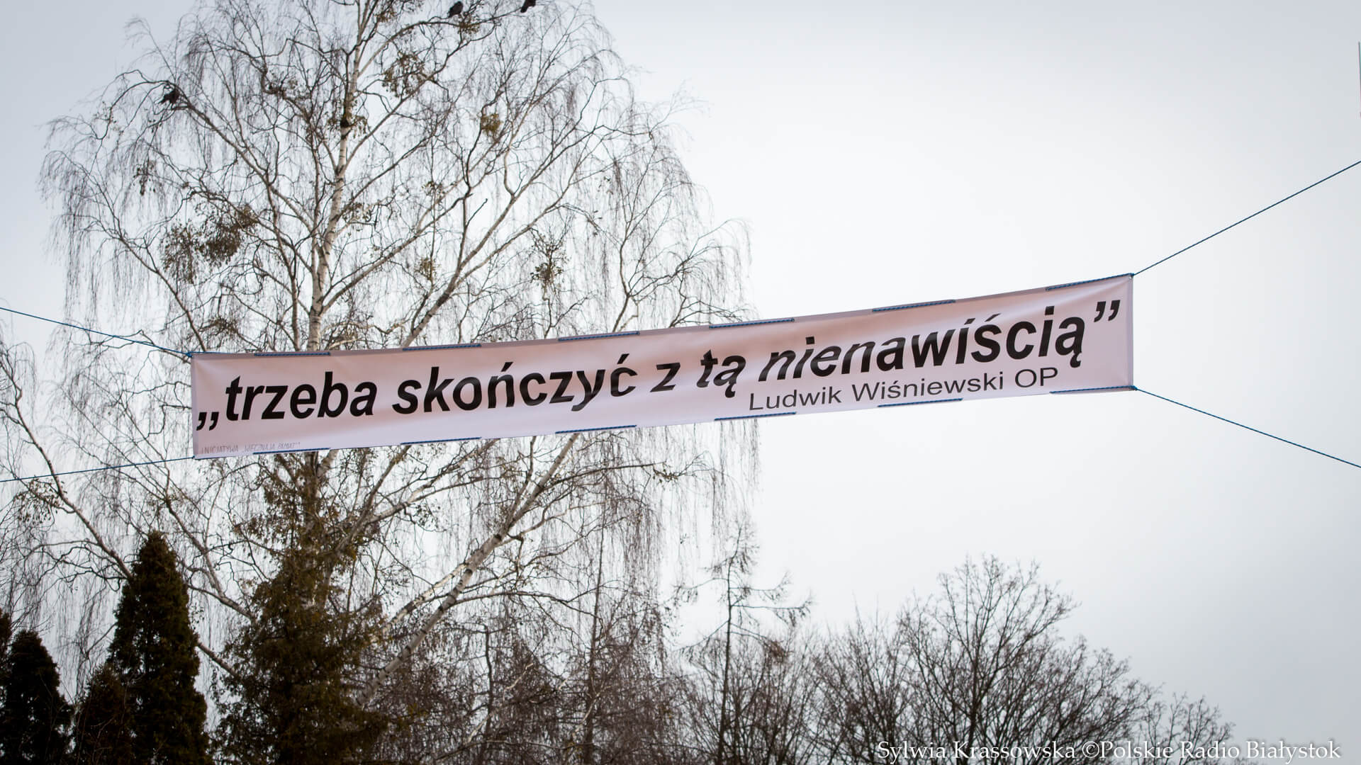 "Trzeba skończyć z tą nienawiścią" - taki napis widnieje na banerze przy urzędzie miasta w #Hajnówka. Są to słowa wypowiedziane w trakcie uroczystości pogrzebowych prezydenta @gdansk - śp. Pawła #Adamowicz.a #MarszPamięciŻołnierzyWyklętych
