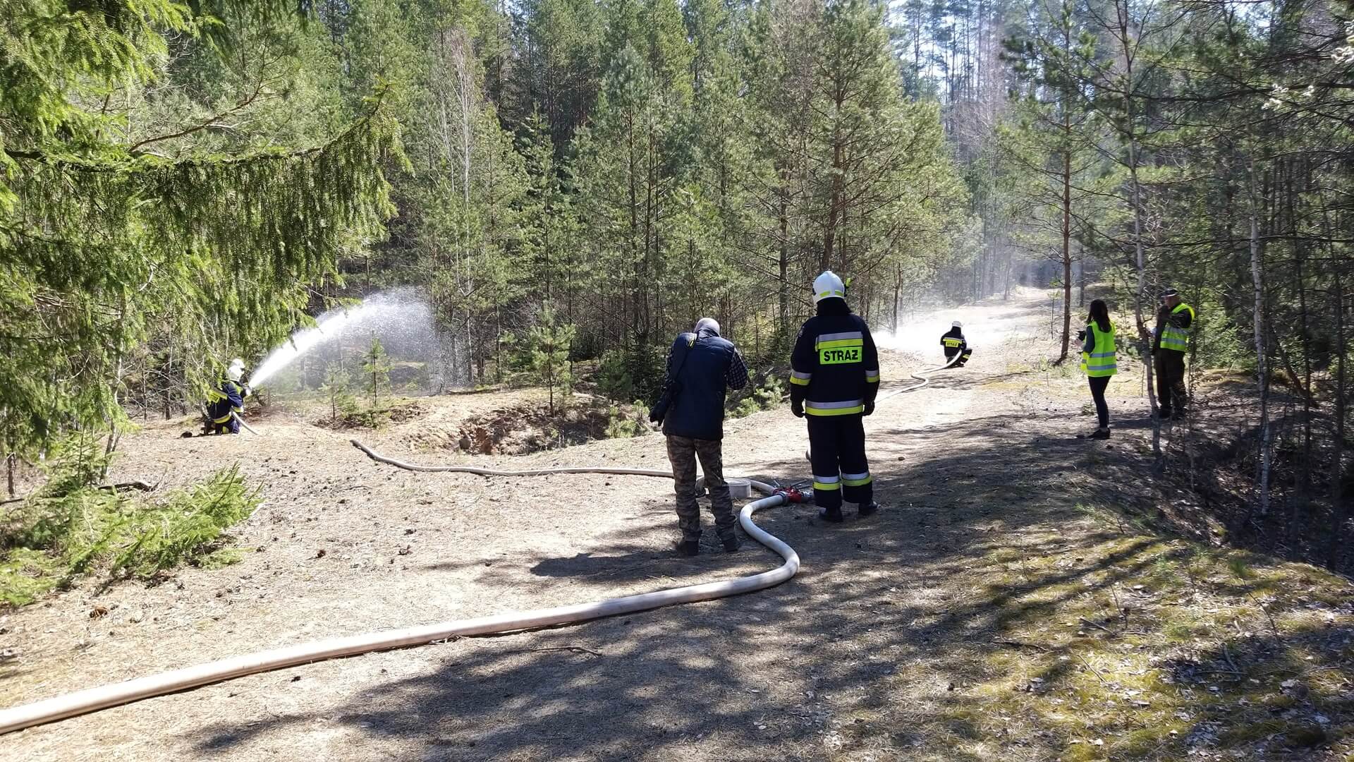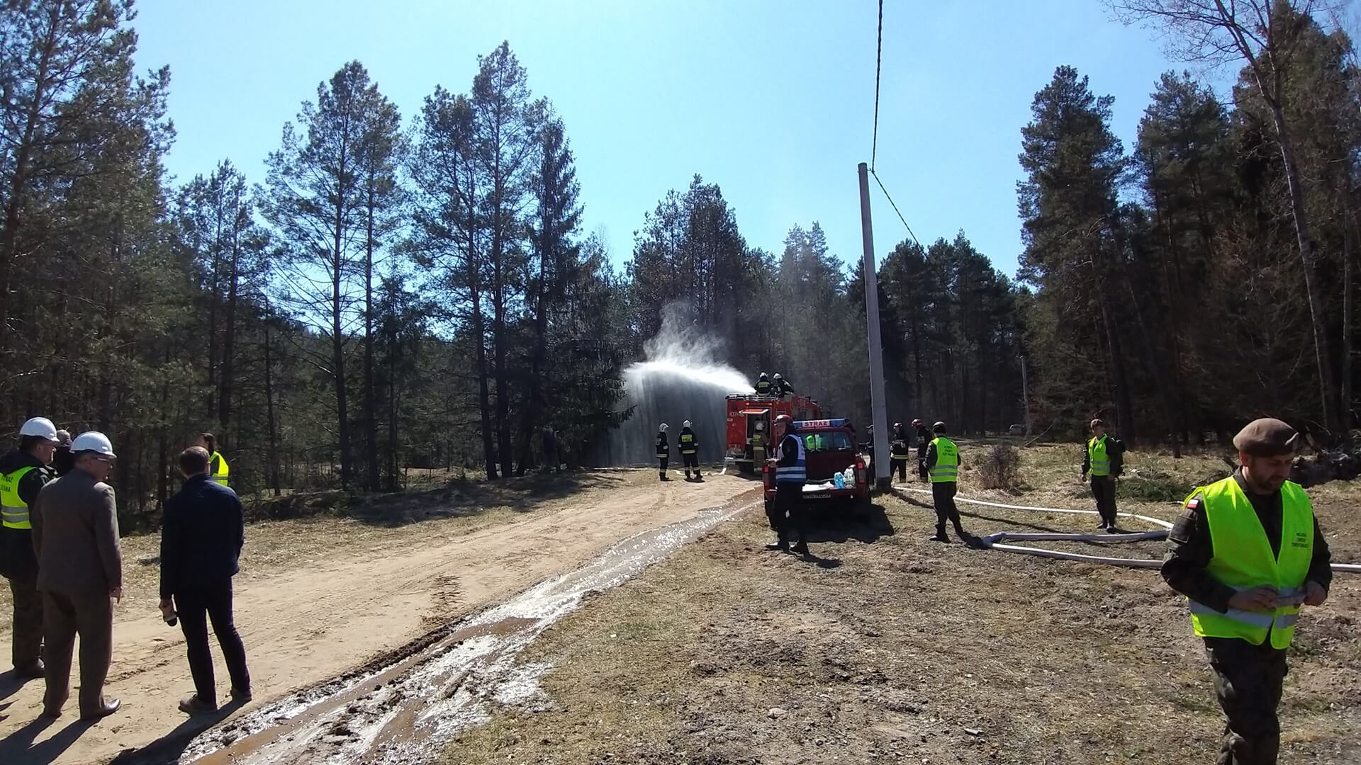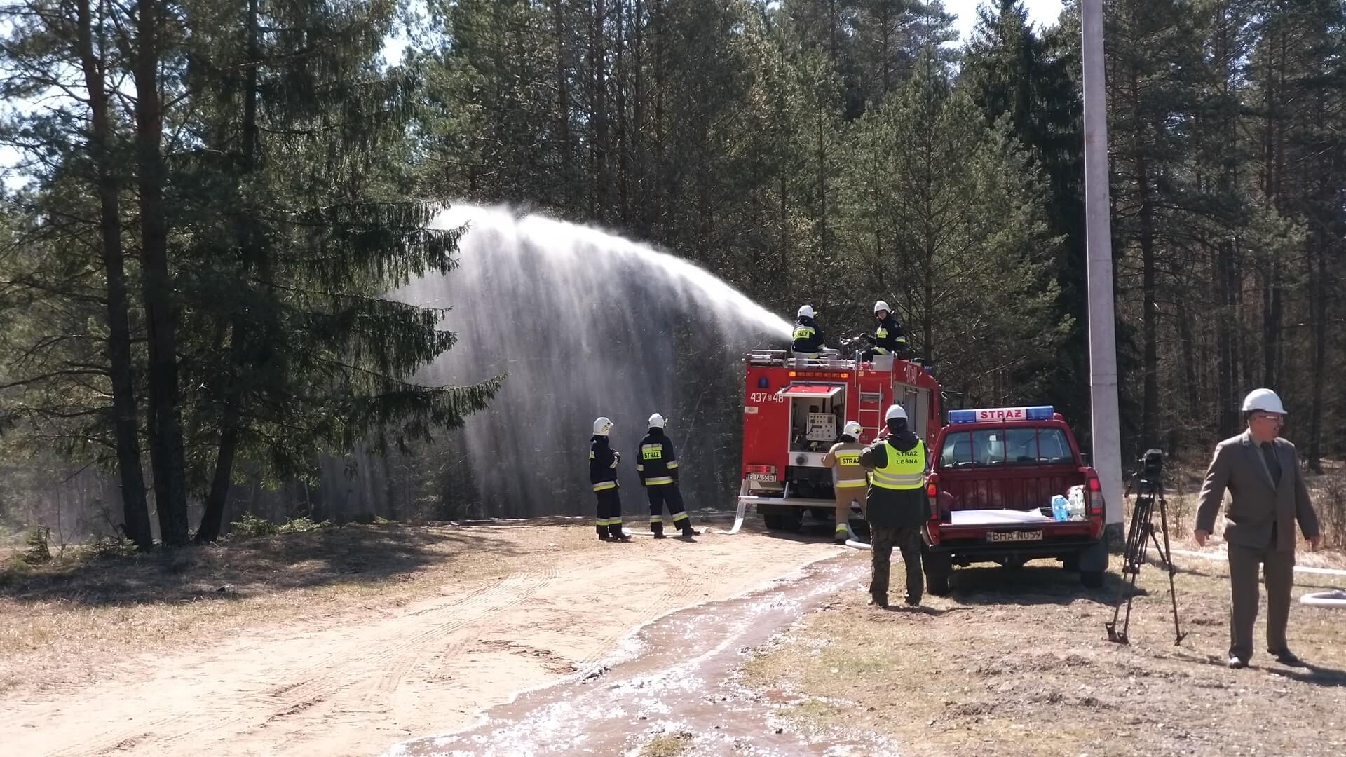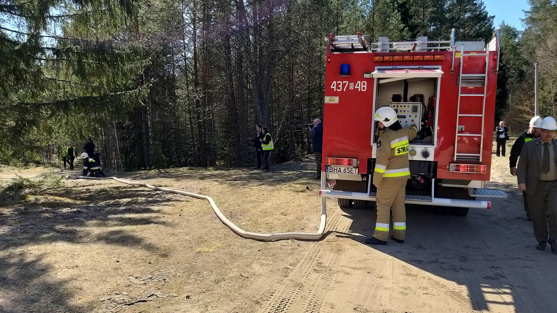 W ćwiczeniach wzięło udział 10 jednostek straży pożarnej m.in. z Hajnówki czy Białowieży, w tym także samolot zrzucający wodę.