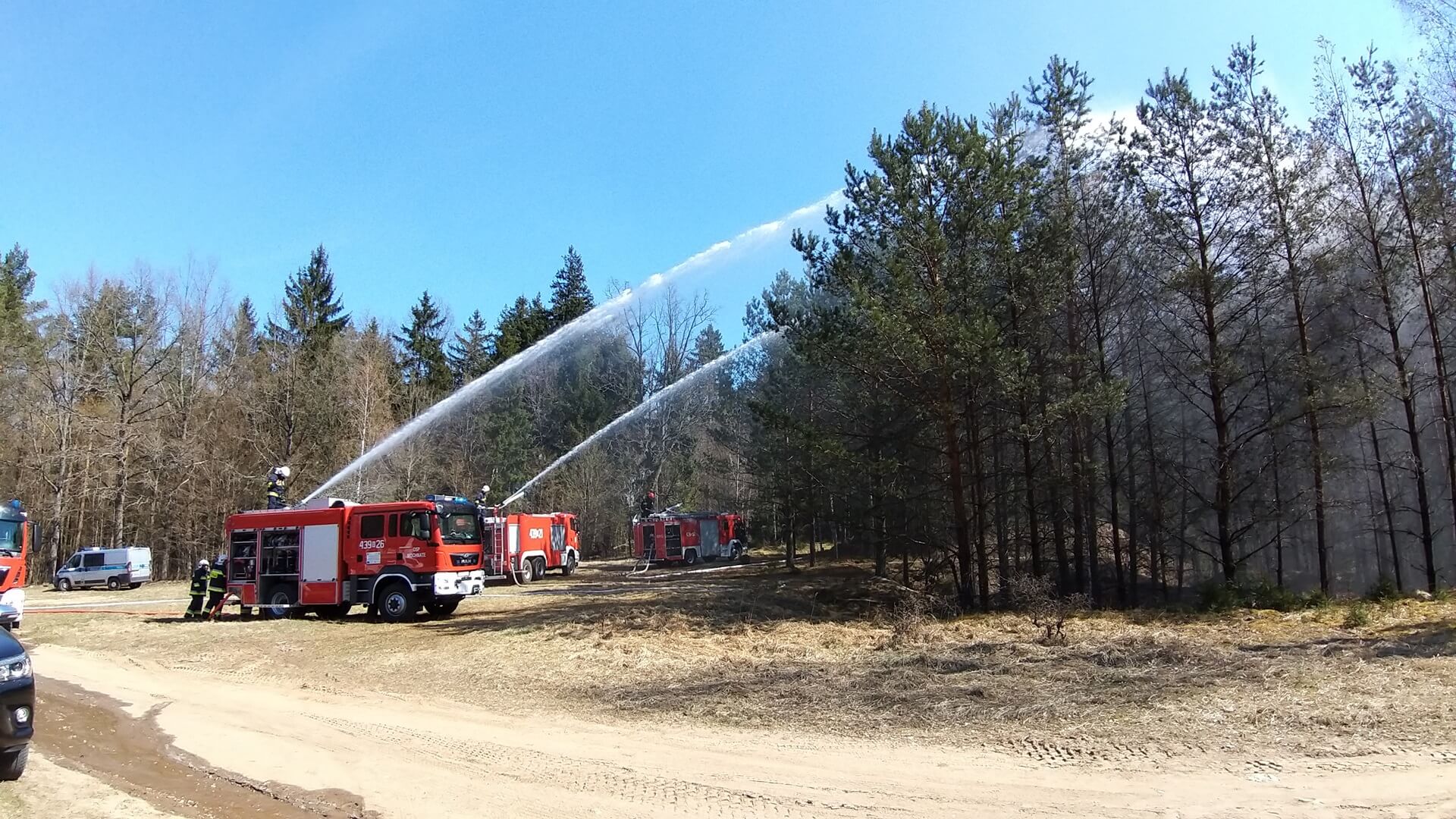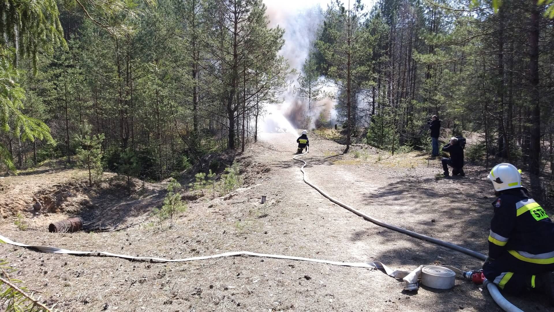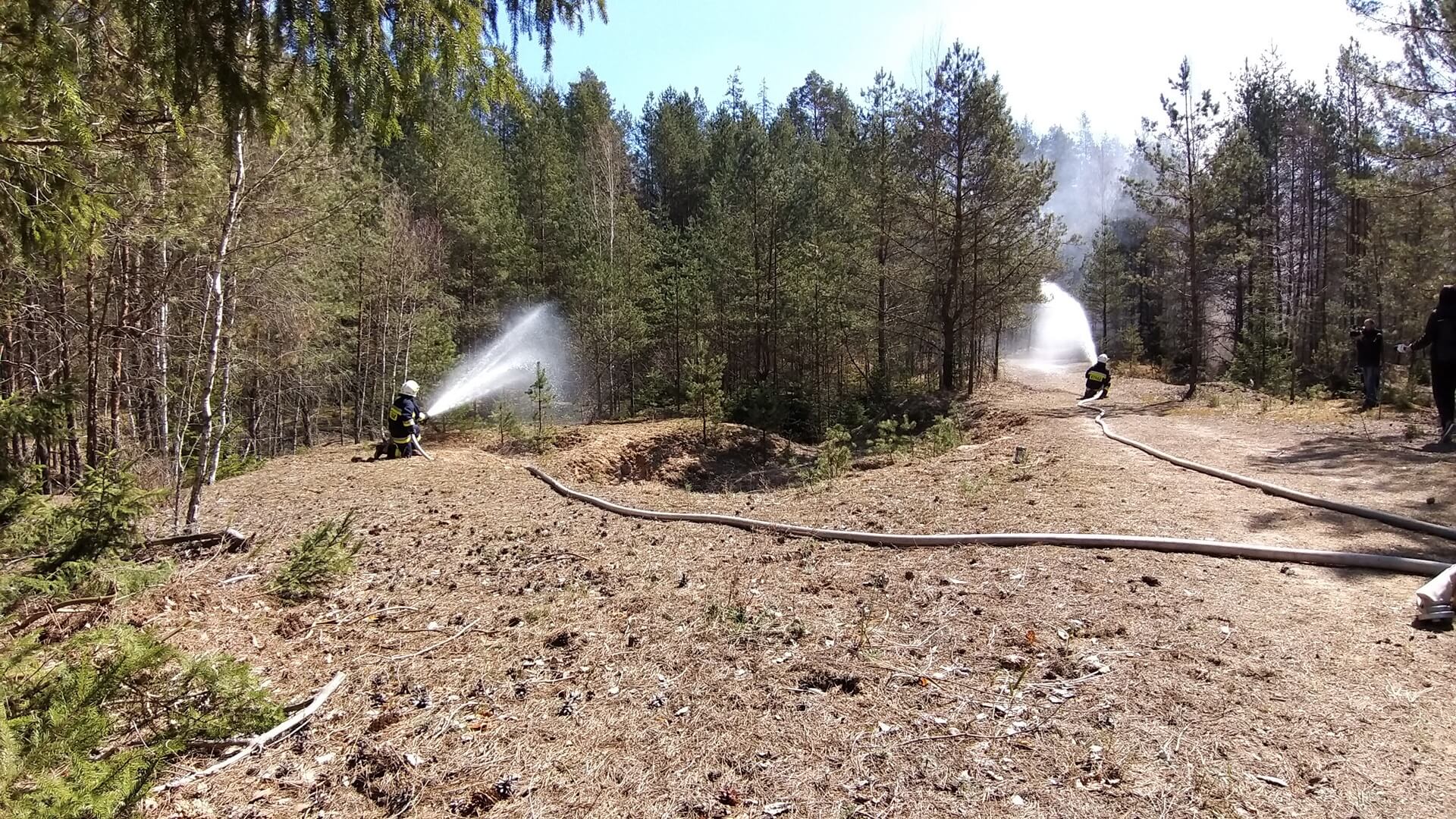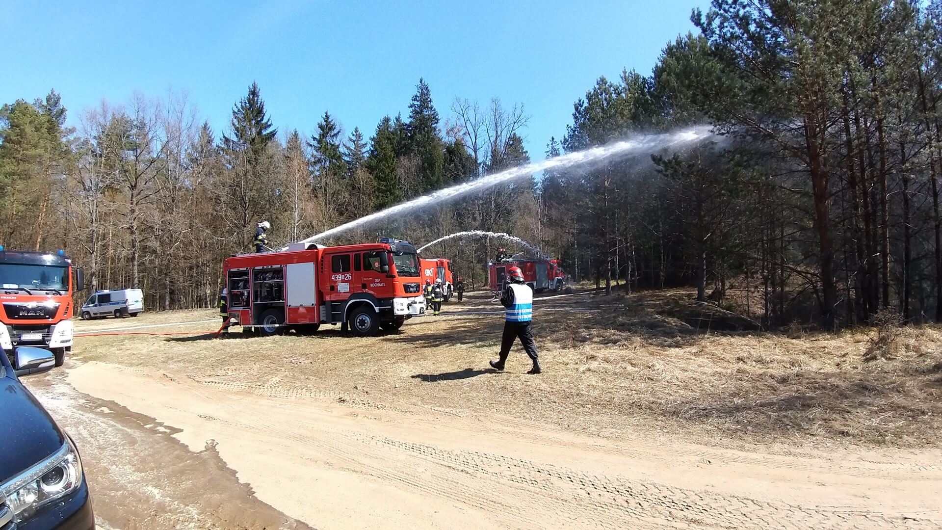 W ćwiczeniach wzięło udział 10 jednostek straży pożarnej m.in. z Hajnówki czy Białowieży, w tym także samolot zrzucający wodę.