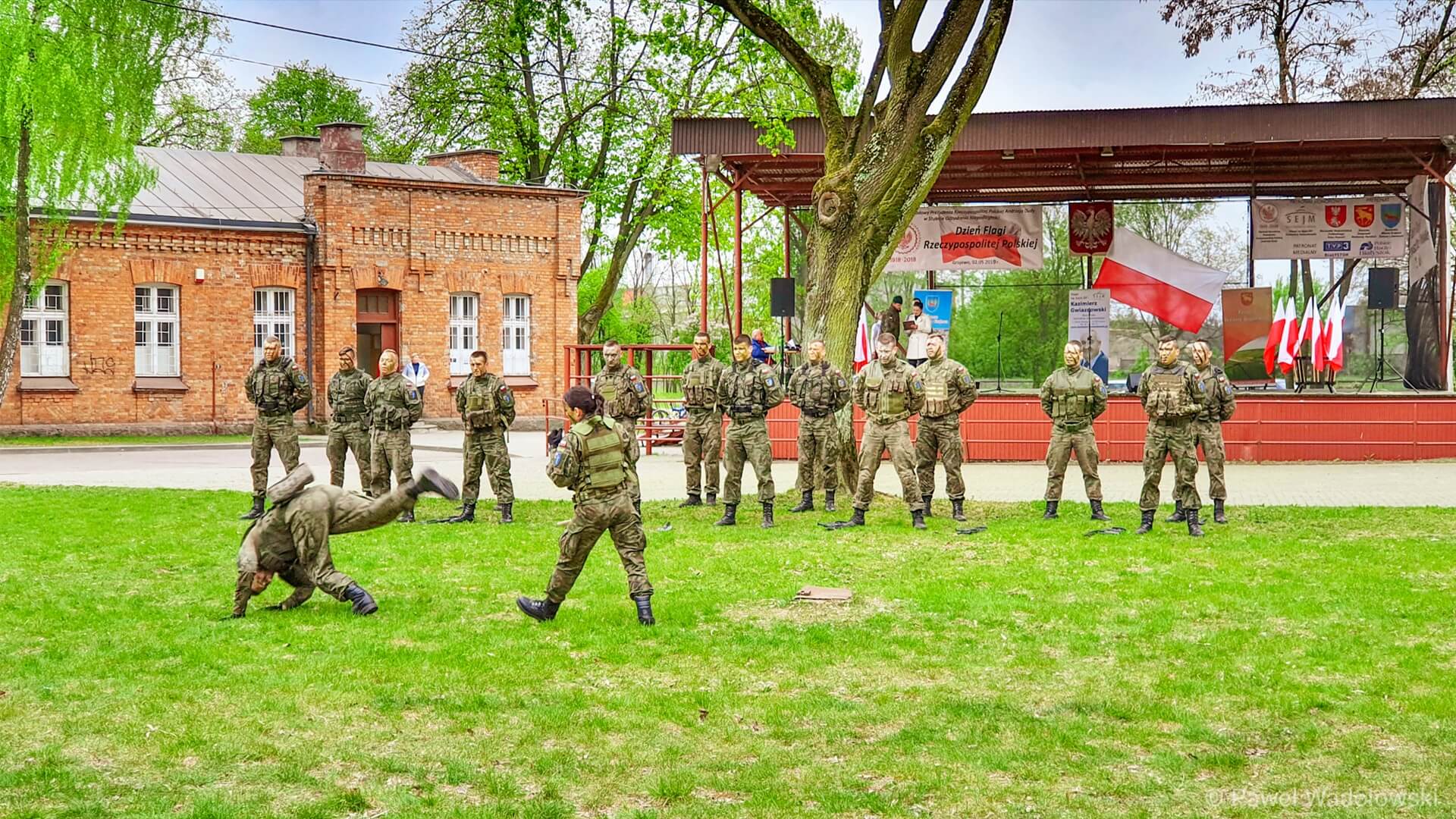 Wcześniej podniesiono flagę i złożono kwiaty przed pomnikiem Żołnierzy 33. Pułku Piechoty na terenie wojskowych warsztatów technicznych. O 14:00 na Starym Rynku rozpoczął się Piknik Patriotyczny.