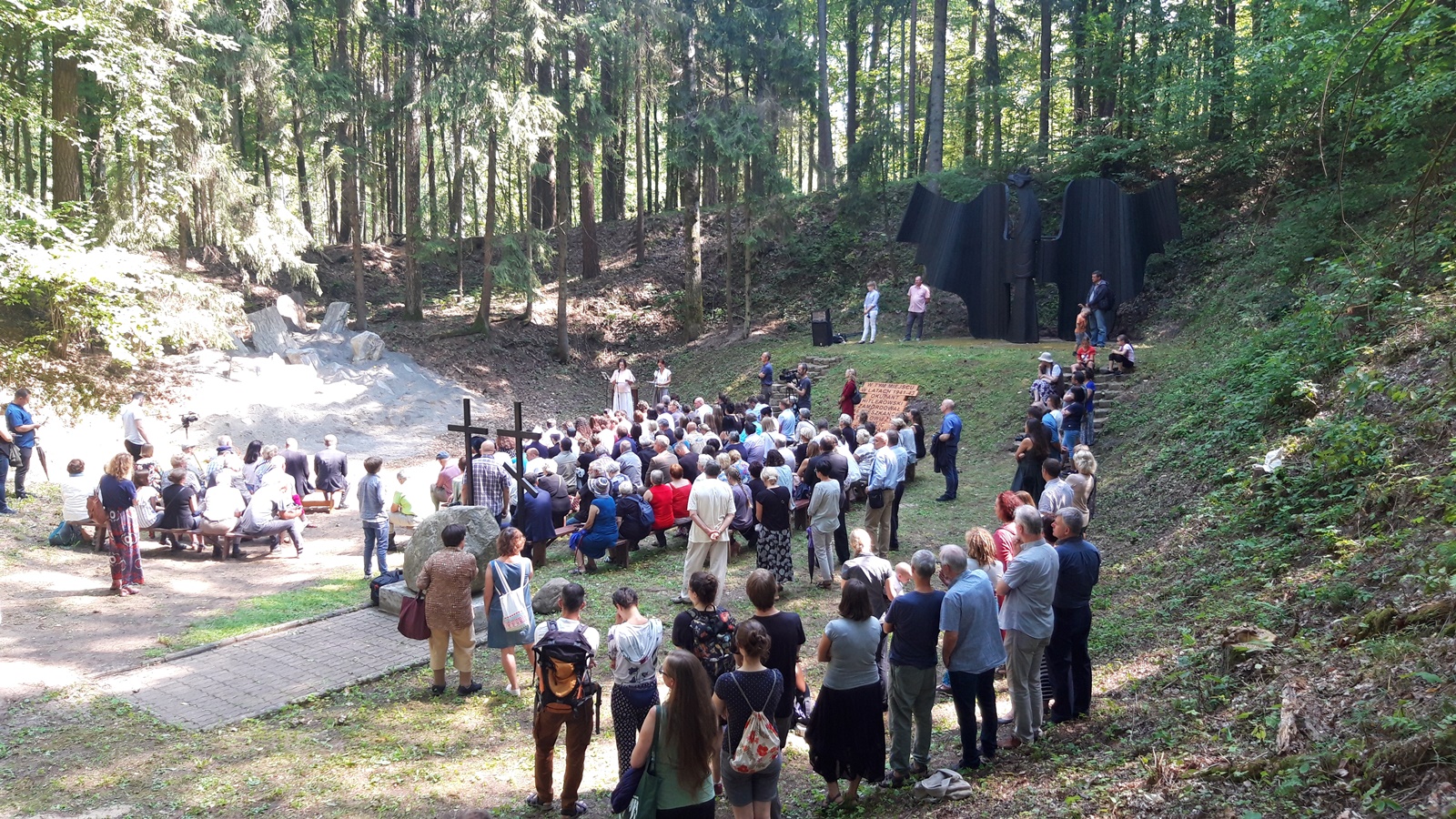 Uzupełnia on istniejący monument w postaci orła oraz krzyży - prawosławnego i katolickiego. Podczas Drugiej Wojny Światowej Niemcy dokonali tutaj mordu na 486 osobach różnych narodowości i religii.