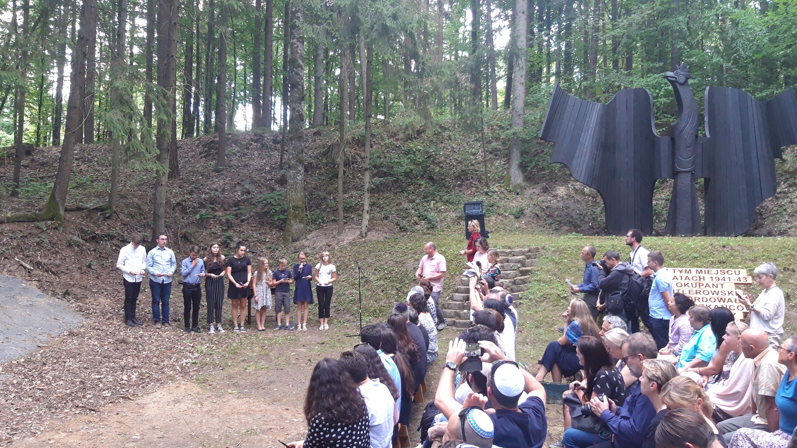 Odsłonięto pomnik poświęcony pamięci zagłady społeczności żydowskiej w miejscu pamięci, w dawnej żwirowni koło Podolan.
