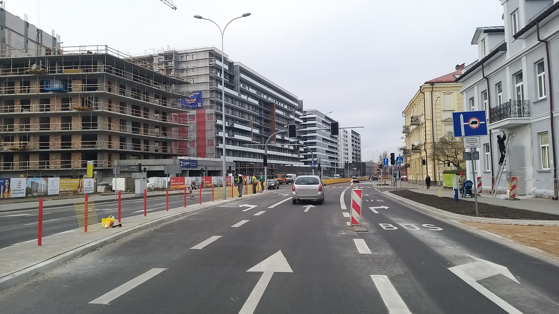 Na razie jednak wciąż kierowcy muszą jeździć według tymczasowej organizacji, tzn. między ustawionymi barierkami na ulicy.