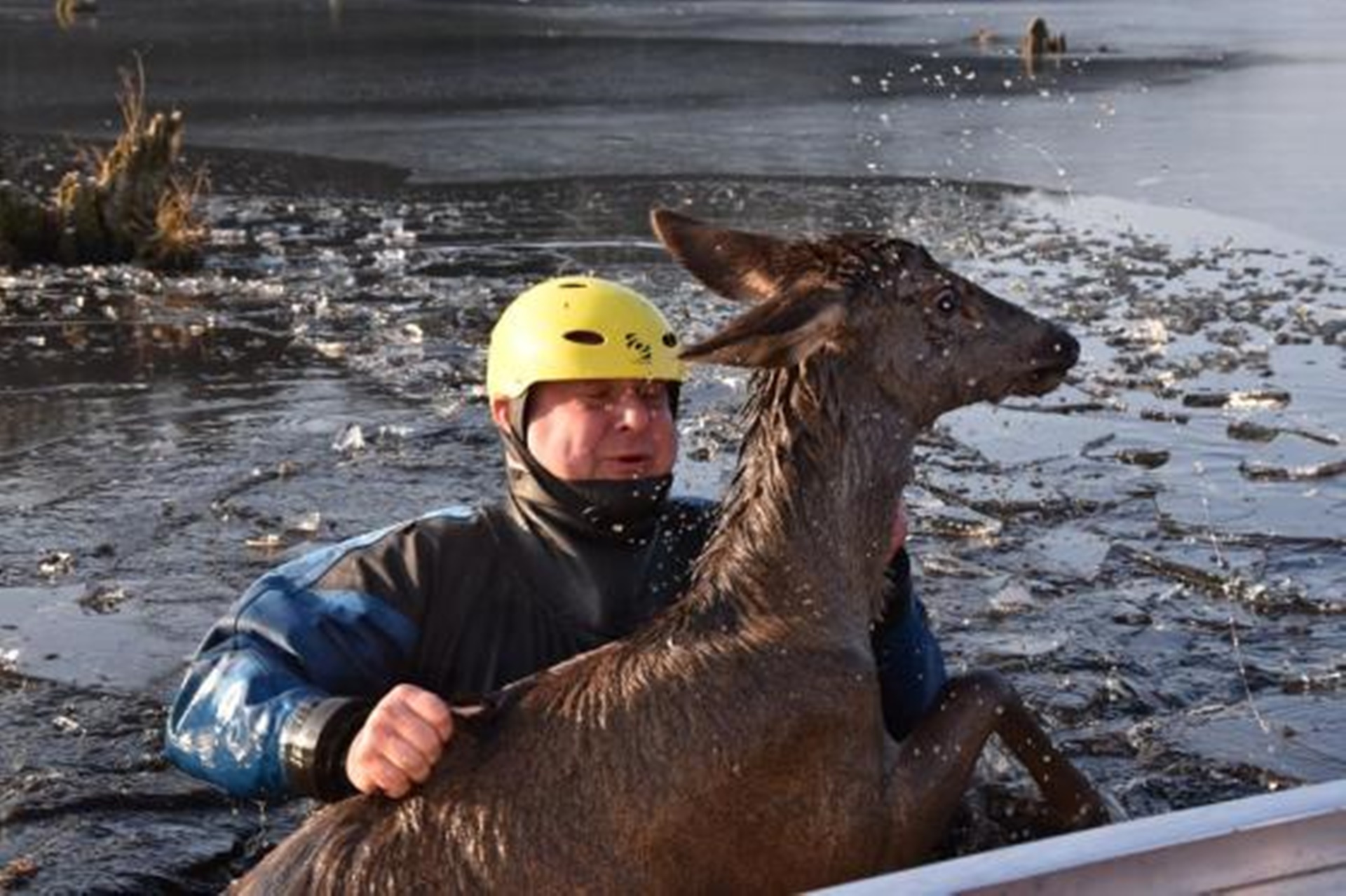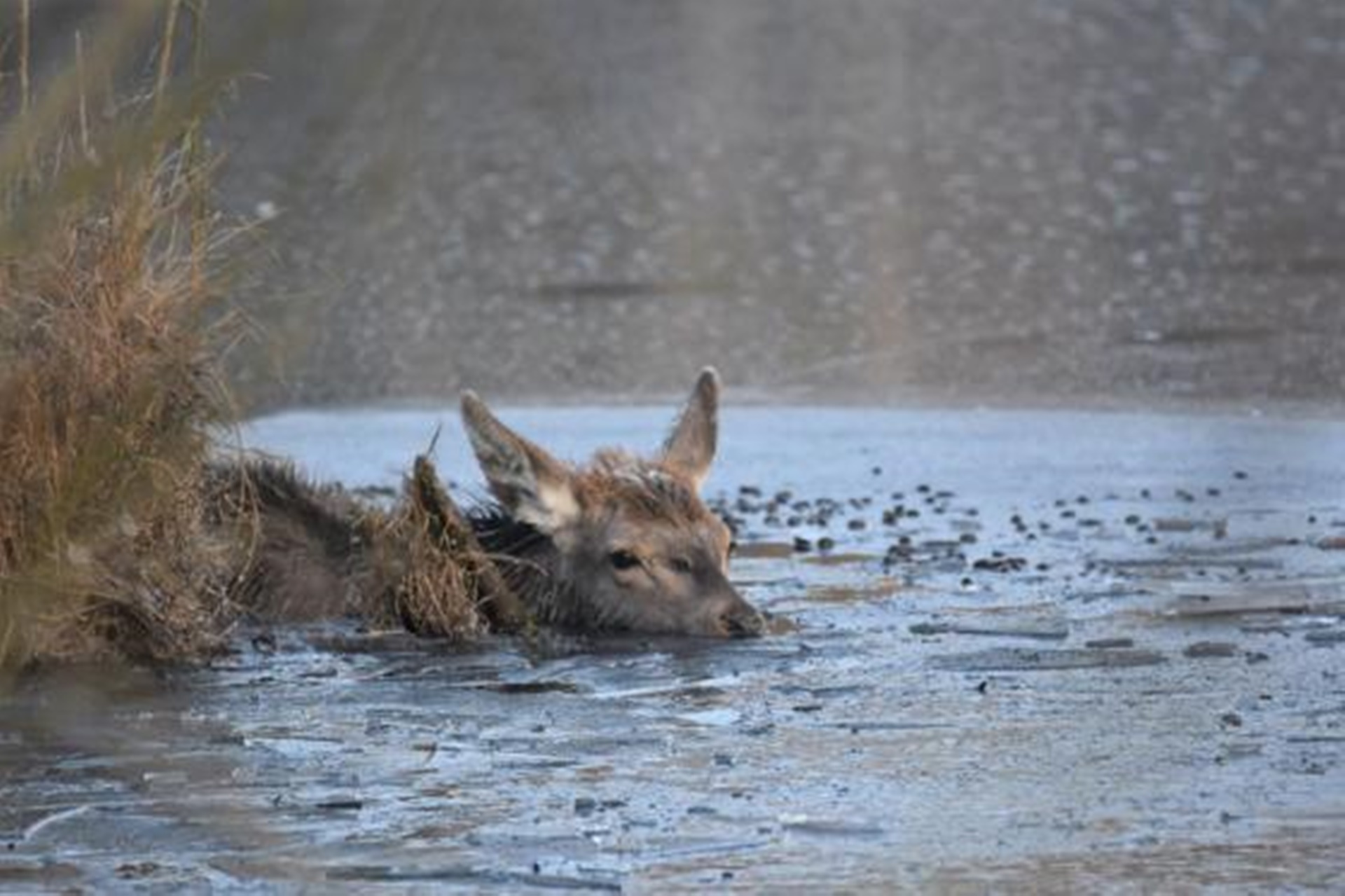 Patrol straży granicznej dostrzegł w zbiorniku wodnym uwięzione zwierzę. Funkcjonariusze powiadomili strażaków i leśników.