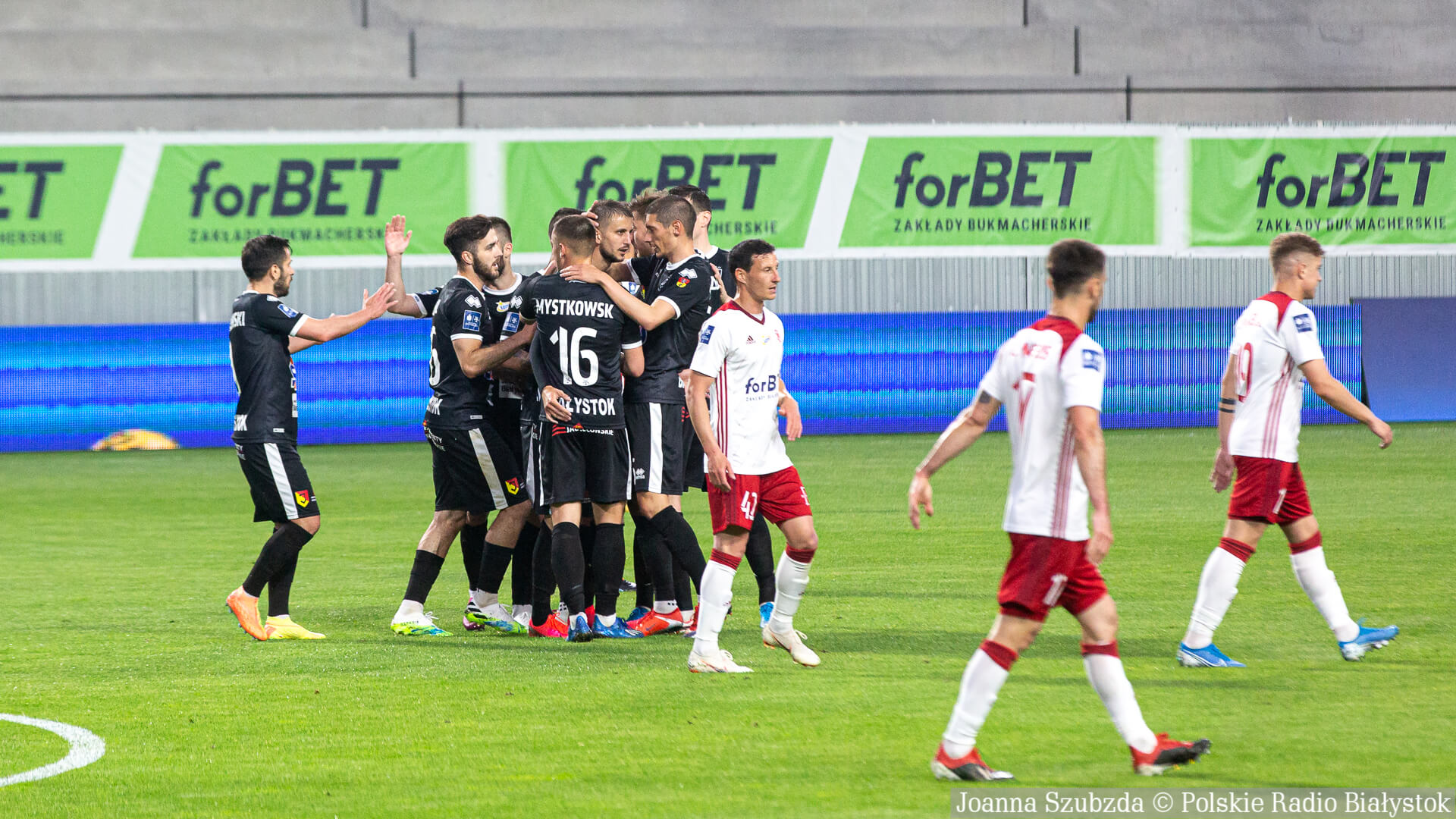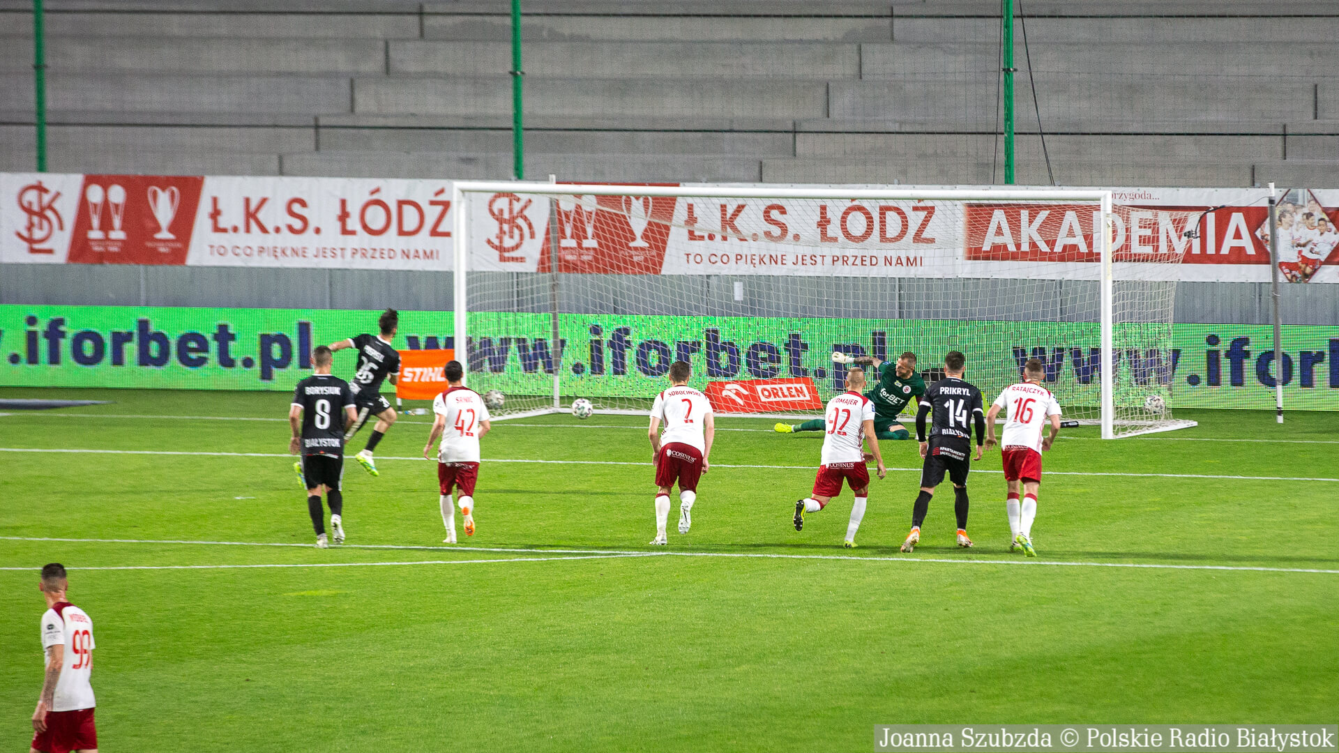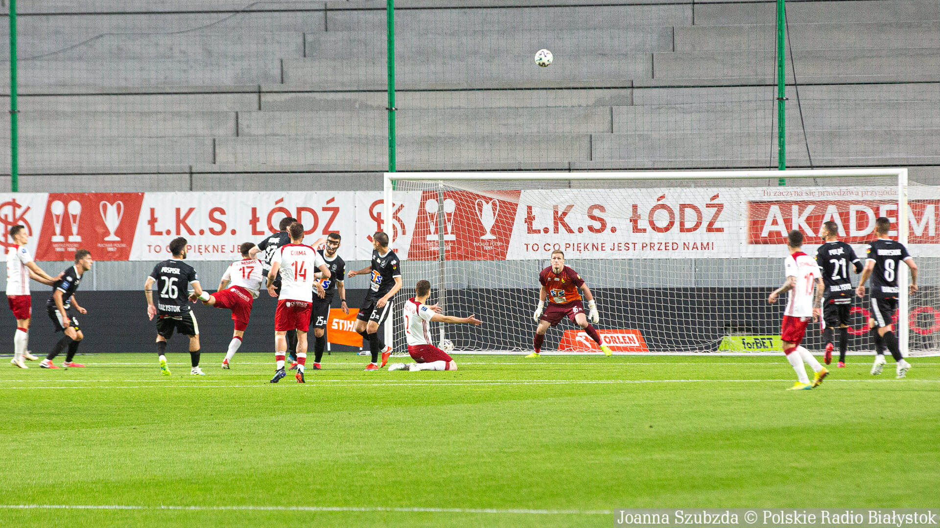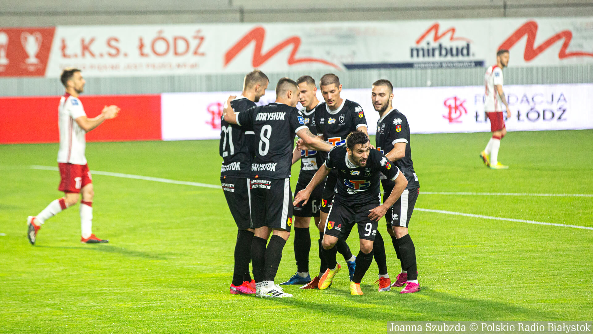 Radio Białystok | Wiadomości | Wiadomości - Jagiellonia Białystok pewnie wygrywa w Łodzi i zapewnia sobie miejsce w pierwszej ósemce tabeli [zdjęcia]