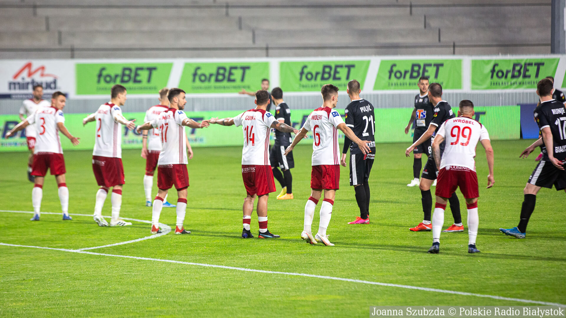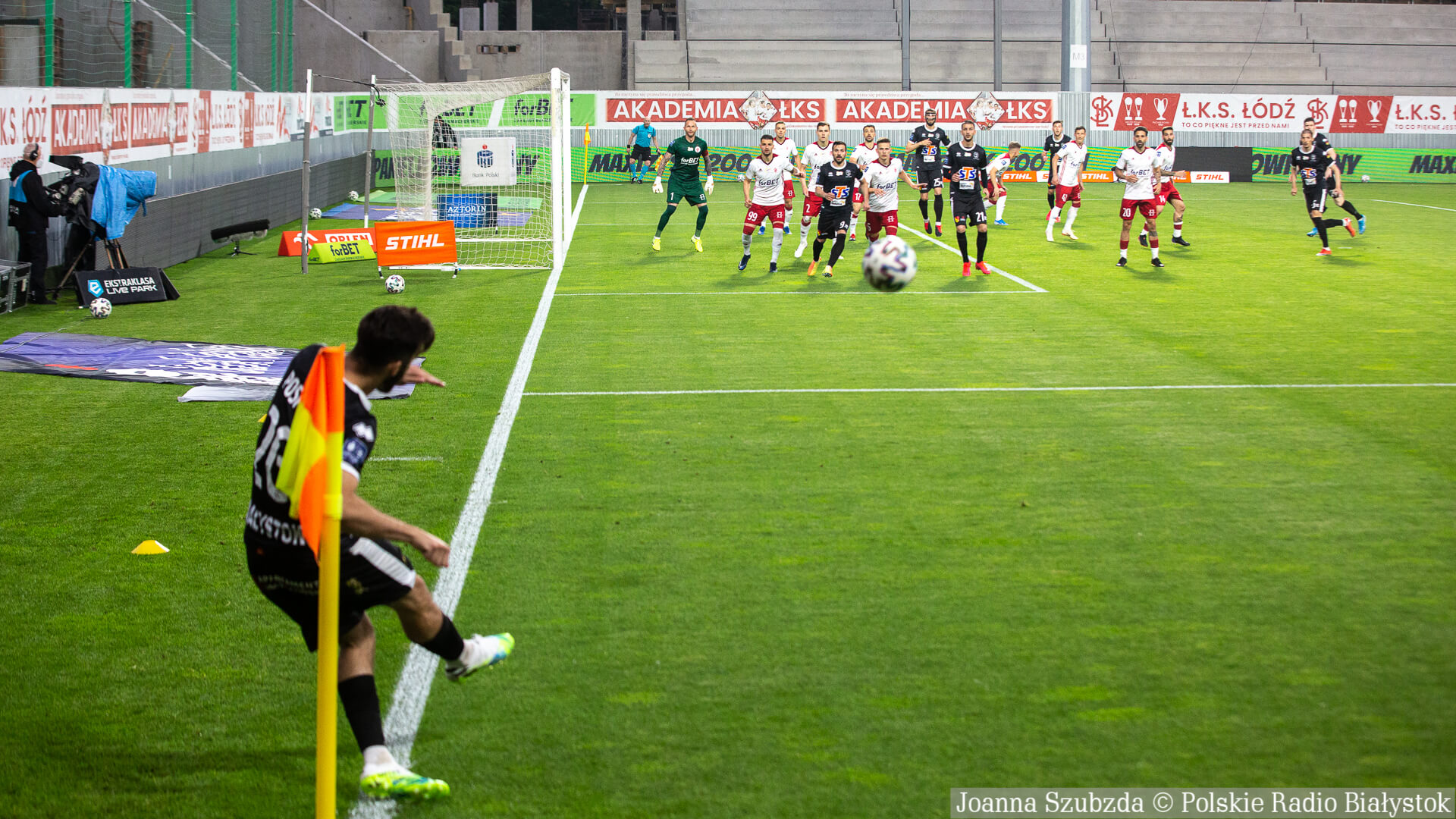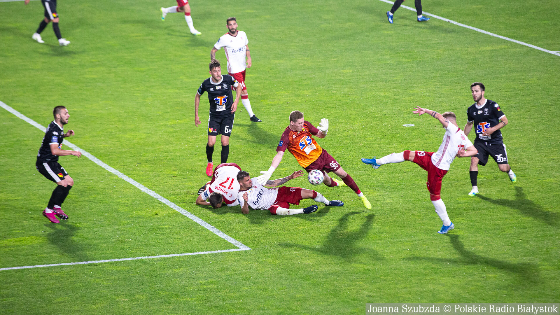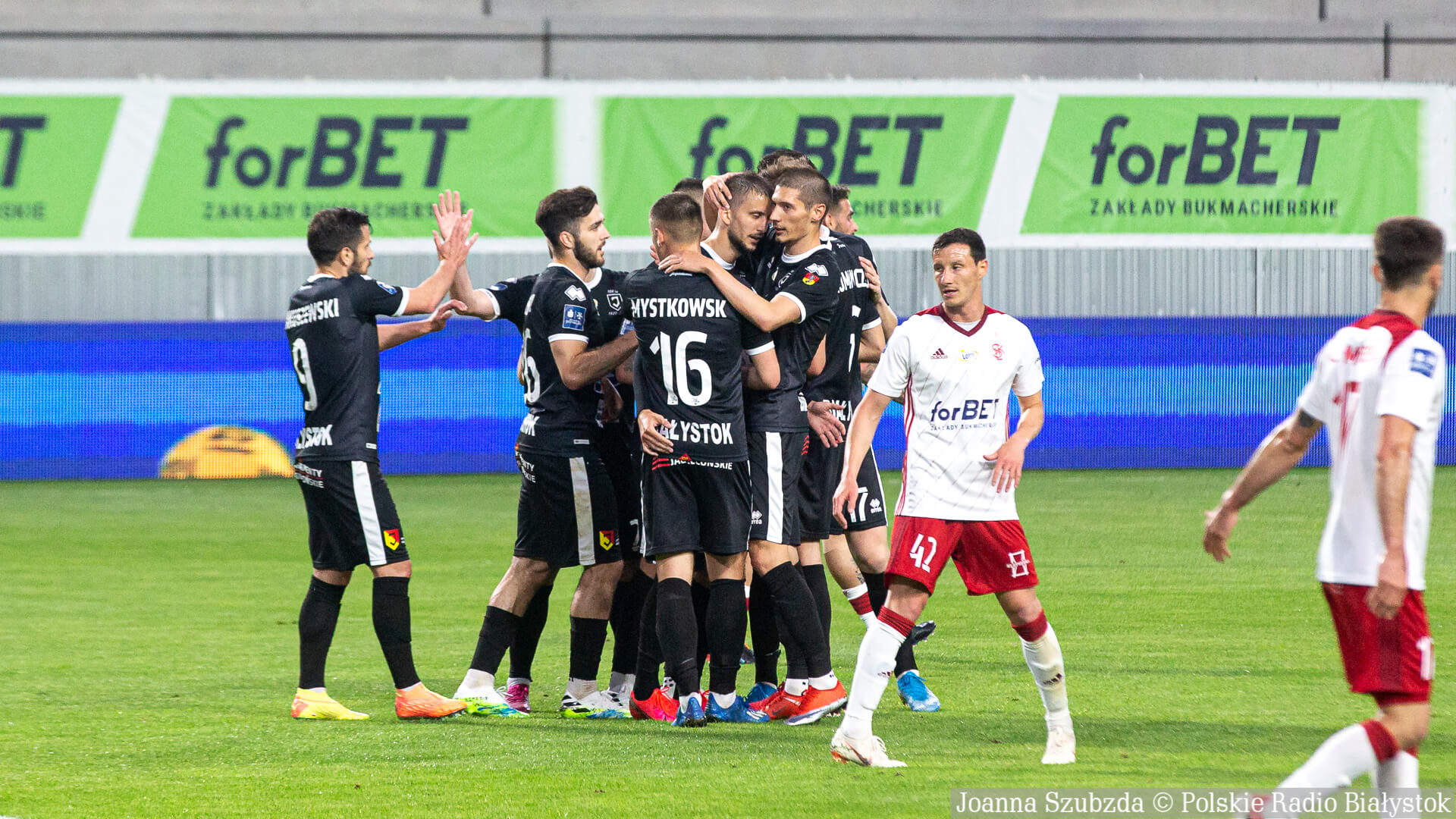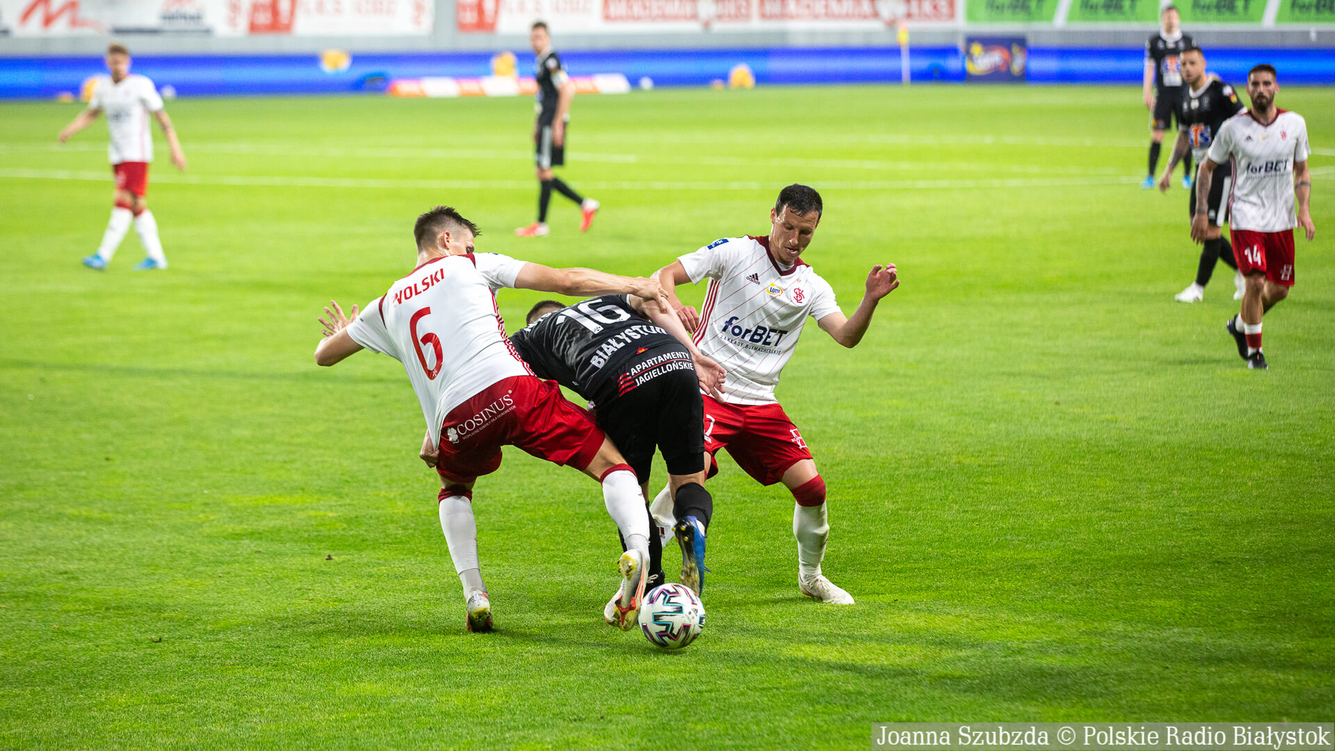 Radio Białystok | Wiadomości | Wiadomości - Jagiellonia Białystok pewnie wygrywa w Łodzi i zapewnia sobie miejsce w pierwszej ósemce tabeli [zdjęcia]