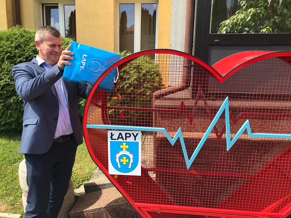 Podobny kosz w kształcie serca stanął także przy Urzędzie Miejskim w Łapach.
