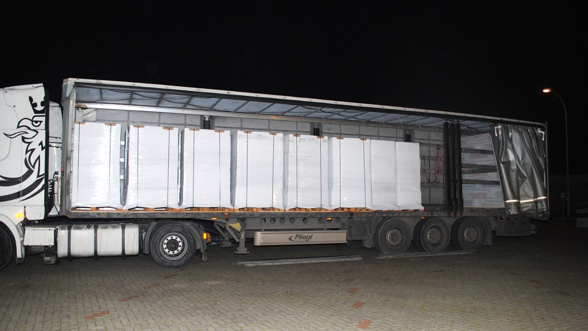 Ciężarówka prowadzona przez 45-letniego Polaka została zatrzymana do kontroli drogowej w miejscowości Żubryn, ok. 20 km od polsko-litewskiej granicy. Zgodnie z dokumentami przewozowymi, ładunkiem miała być wełna mineralna. Pogranicznicy zdecydowali o konieczności szczegółowej kontroli; ich przypuszczenia okazały się trafne, bo w naczepie znaleźli papierosy z białoruskimi znakami akcyzy.