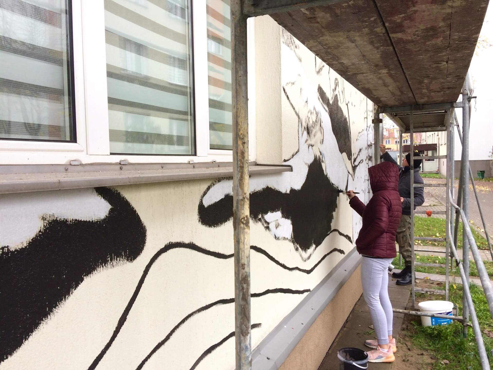 Mural powstaje w ramach inicjatywy lokalnej w projekcie "Klub Integracji Społecznej w Mońkach”, realizowanym przez Ośrodek Wspierania Organizacji Pozarządowych w partnerstwie z Miejskim Ośrodkiem Pomocy Społecznej w Mońkach.