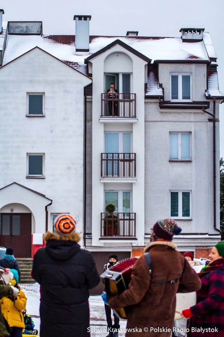 Białostoczanie wyglądali przez okna, niektórzy wychodzili na balkony, włączali się do wspólnego śpiewania inni rzucali drobne pieniądze w podziękowaniu za granie.