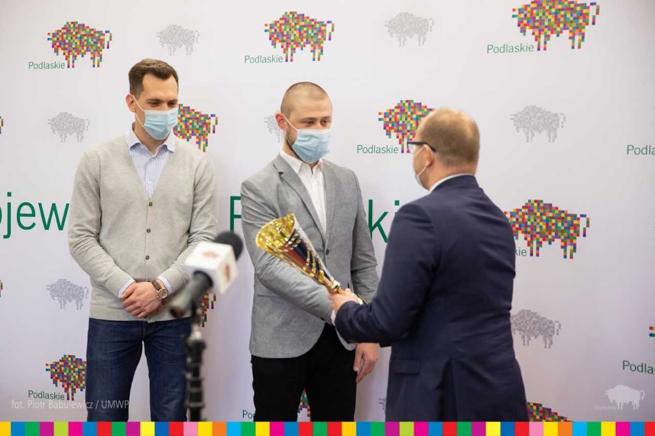 To oni otrzymali najwięcej głosów kibiców w internetowym konkursie zorganizowanym przez podlaski samorząd. W środę (30.12) pamiątkowy puchar z rąk marszałka Artura Kosickiego odebrał prezes Lowlanders Białystok Piotr Morko.