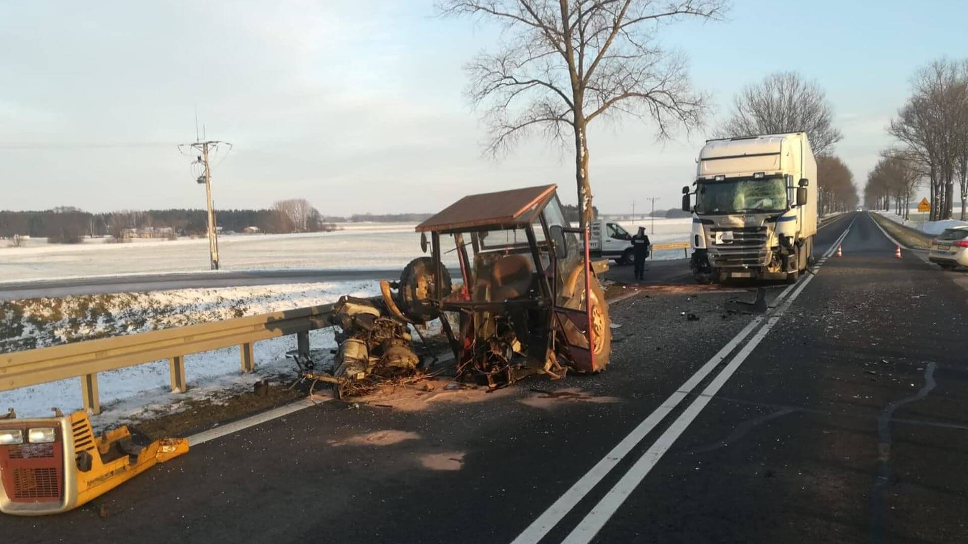 W miejscowości Jabłonka Kościelna TIR zderzył się z ciągnikiem rolniczym. Do szpitala trafił 84-letni kierujący ciągnikiem. Mężczyzna zmarł w szpitalu. Według wstępnych ustaleń policjantów, nie ustąpił on pierwszeństwa ciężarówce.
