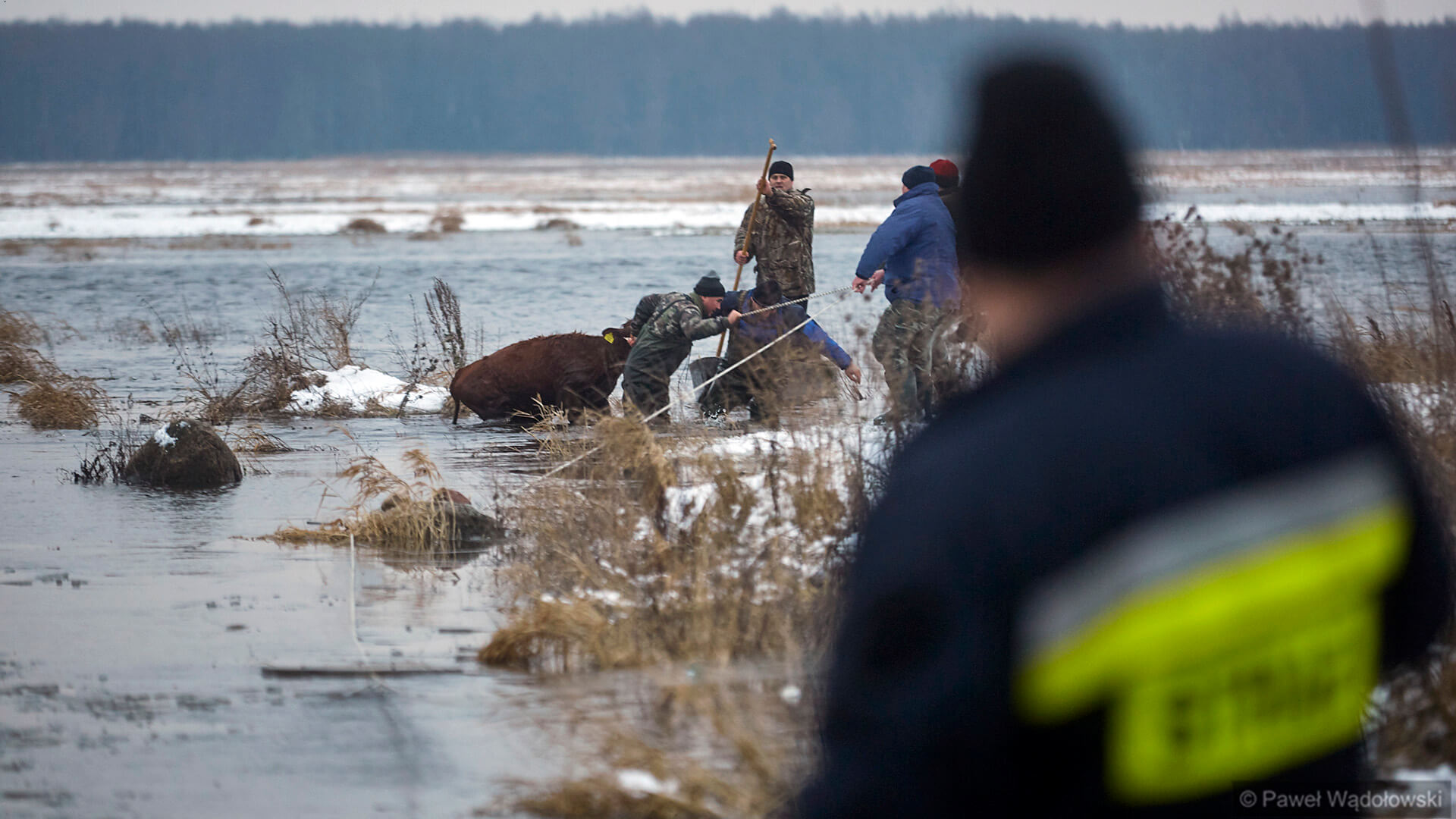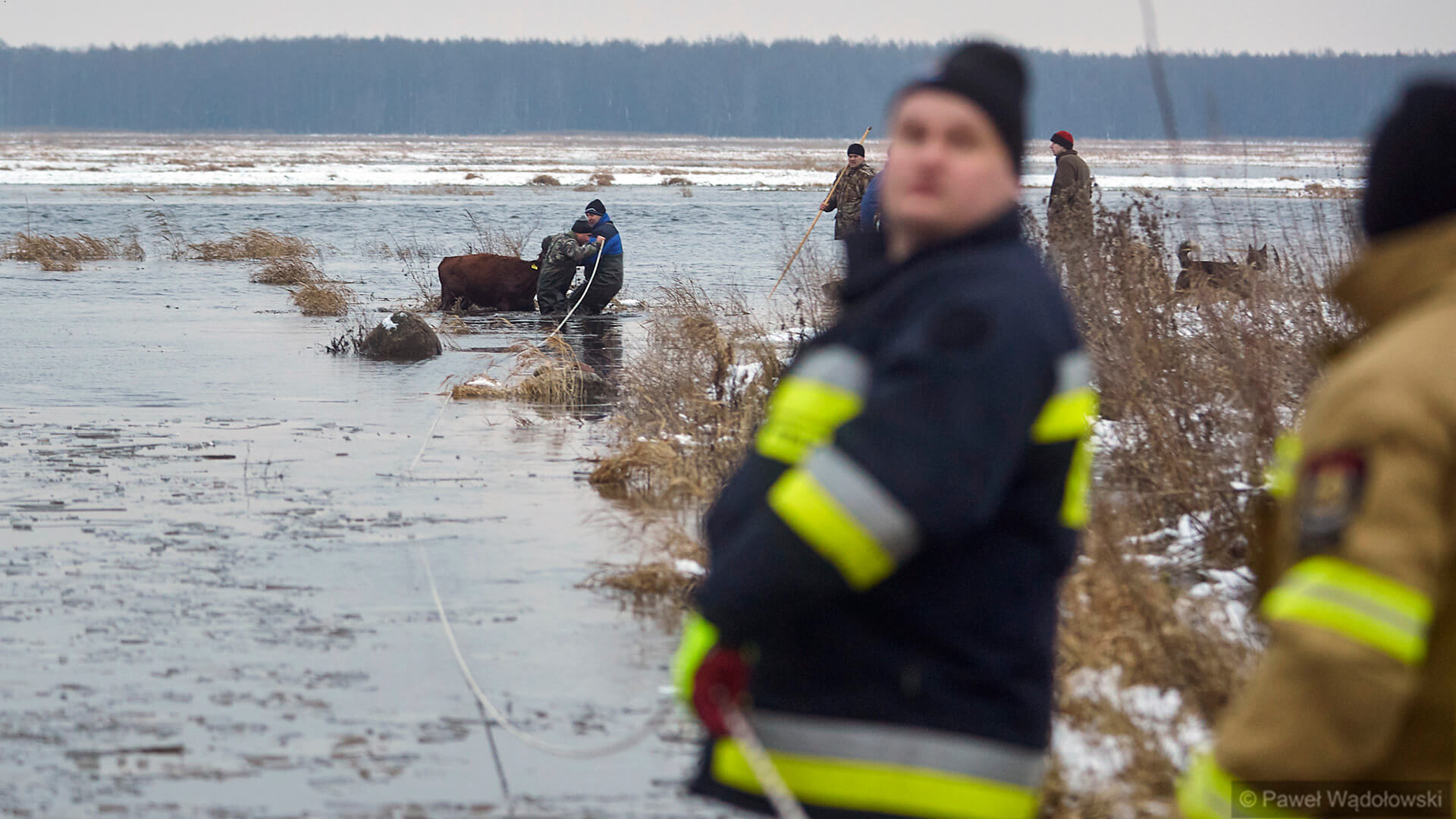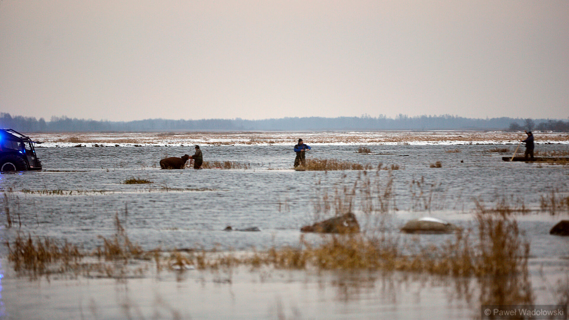 Zwierzęta, spłoszone przez stado psów przepłynęły wtedy przez rzekę. Przez wiele dni nie udało się ich odnaleźć, wczoraj (12.01) po południu rolnicy znaleźli i złapali całe stado. Najtrudniejsza część akcji była dopiero przed nimi - przeprawienie stada na drugą stronę Biebrzy.