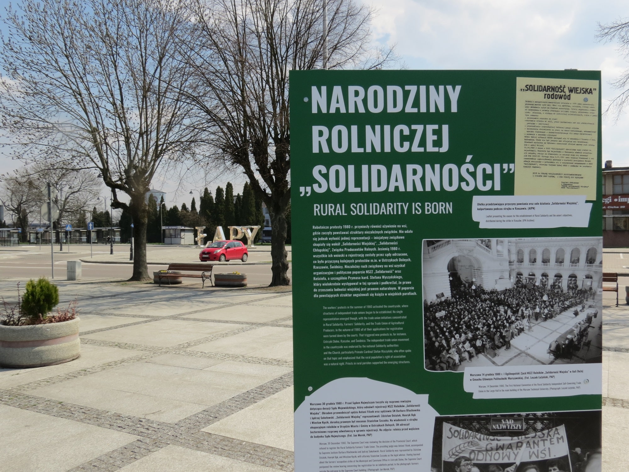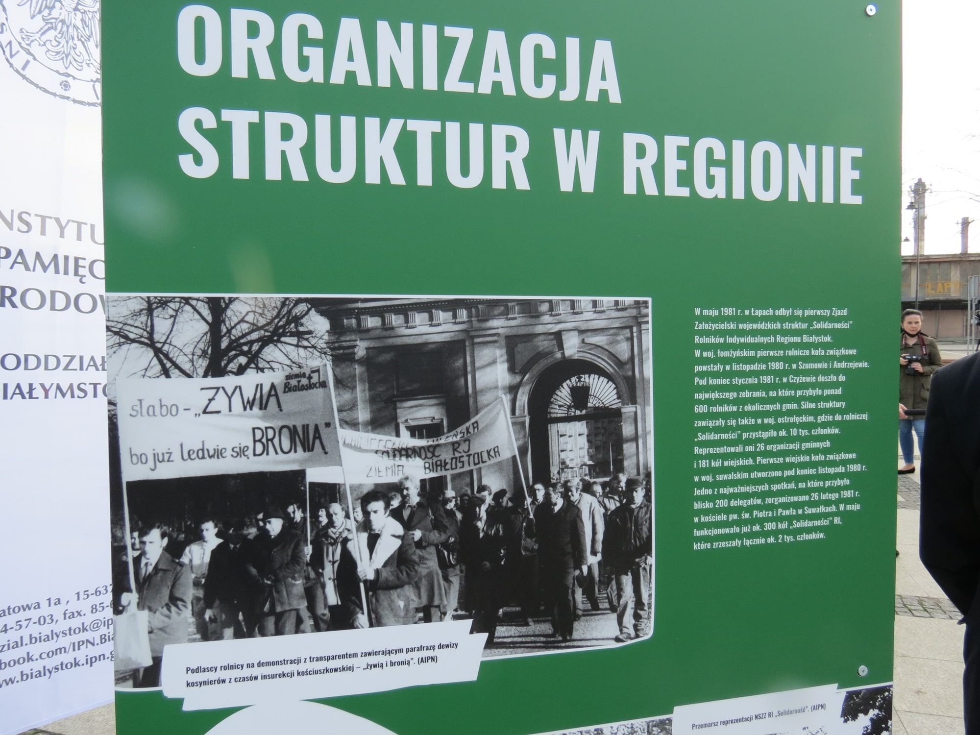 W województwie podlaskim wystawa została otwarta we środę (21.04) w południe w Łapach na Placu Niepodległości. Ekspozycja składa się z części ogólnopolskiej oraz regionalnej, która dotyczy struktur rolniczej "Solidarności" w północno-wschodniej Polsce.
