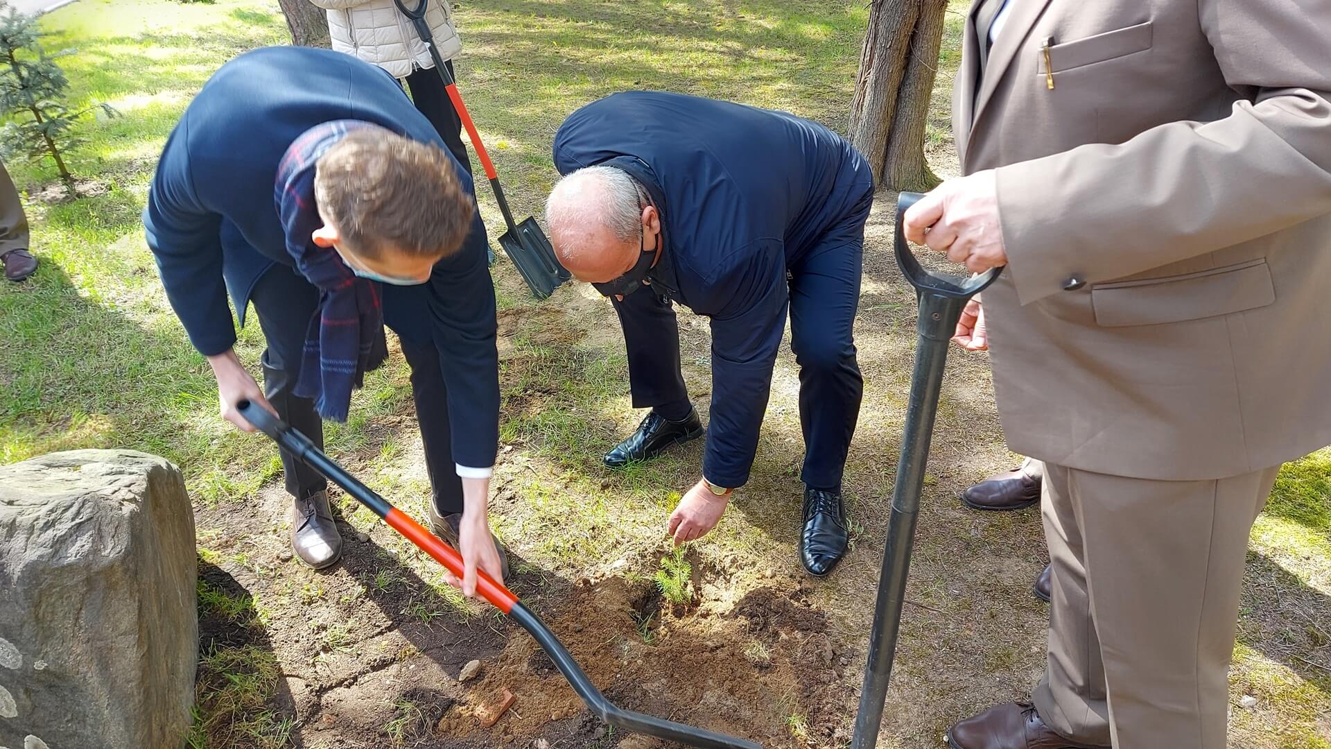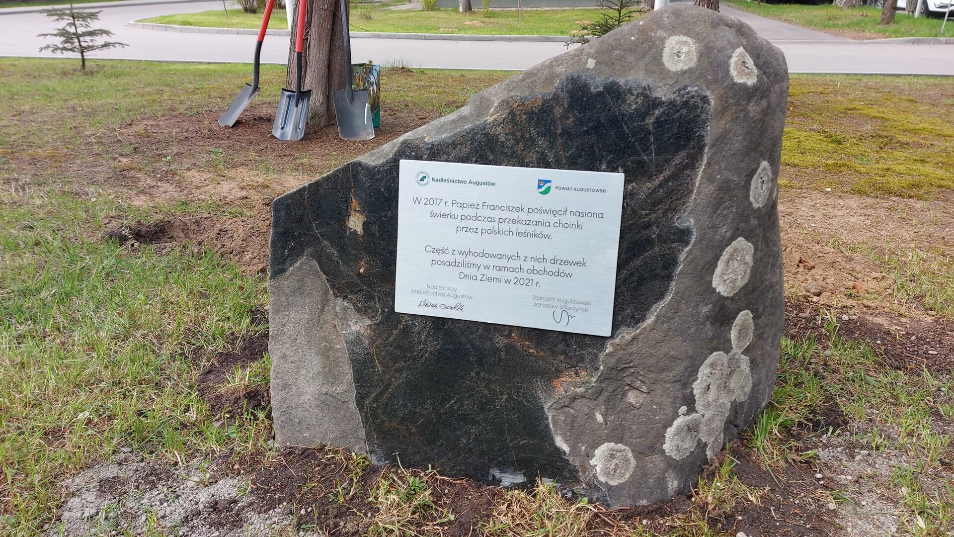 Kilkadziesiąt papieskich świerków posadzono w czwartek (22.04) w Augustowie.