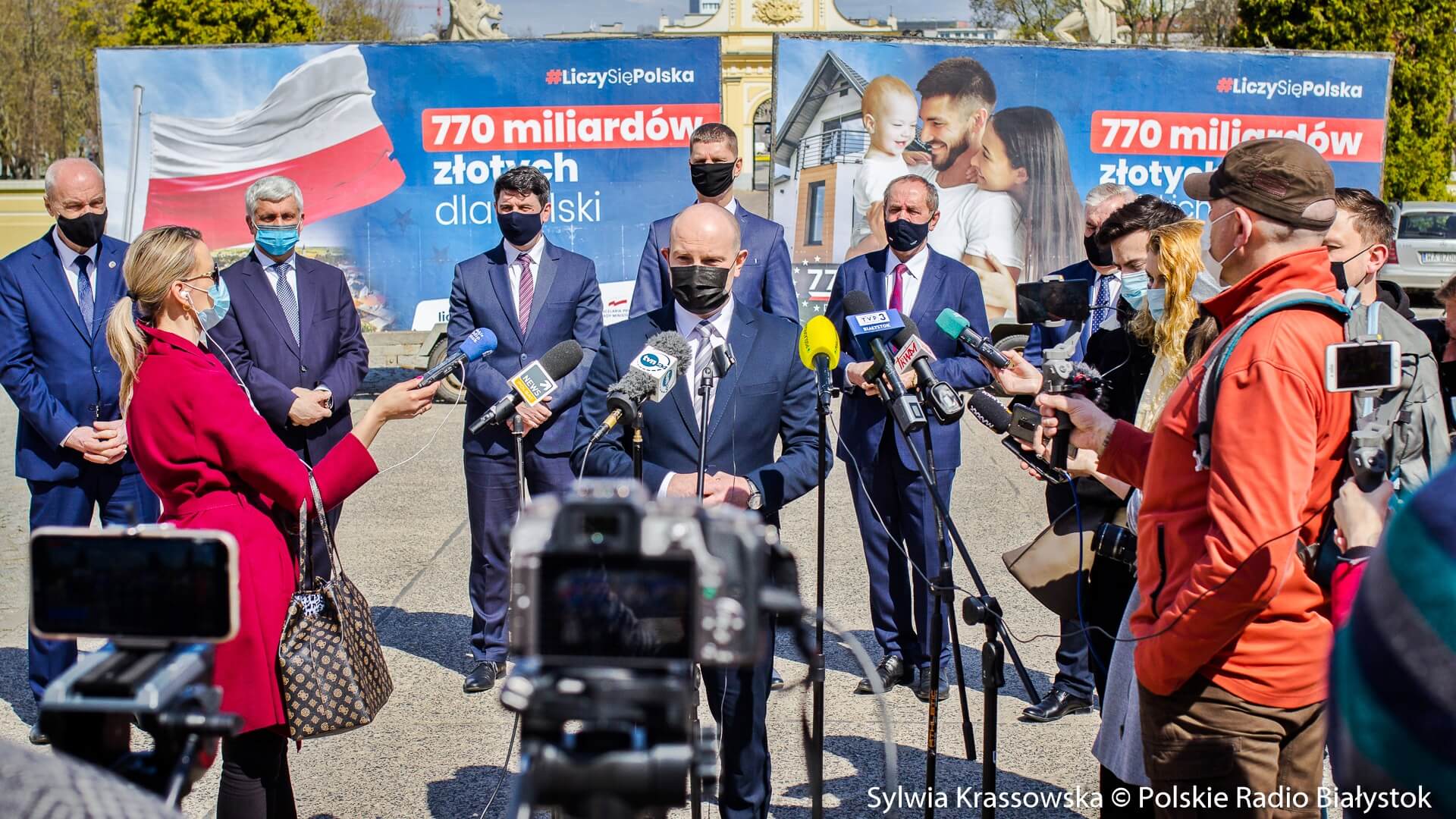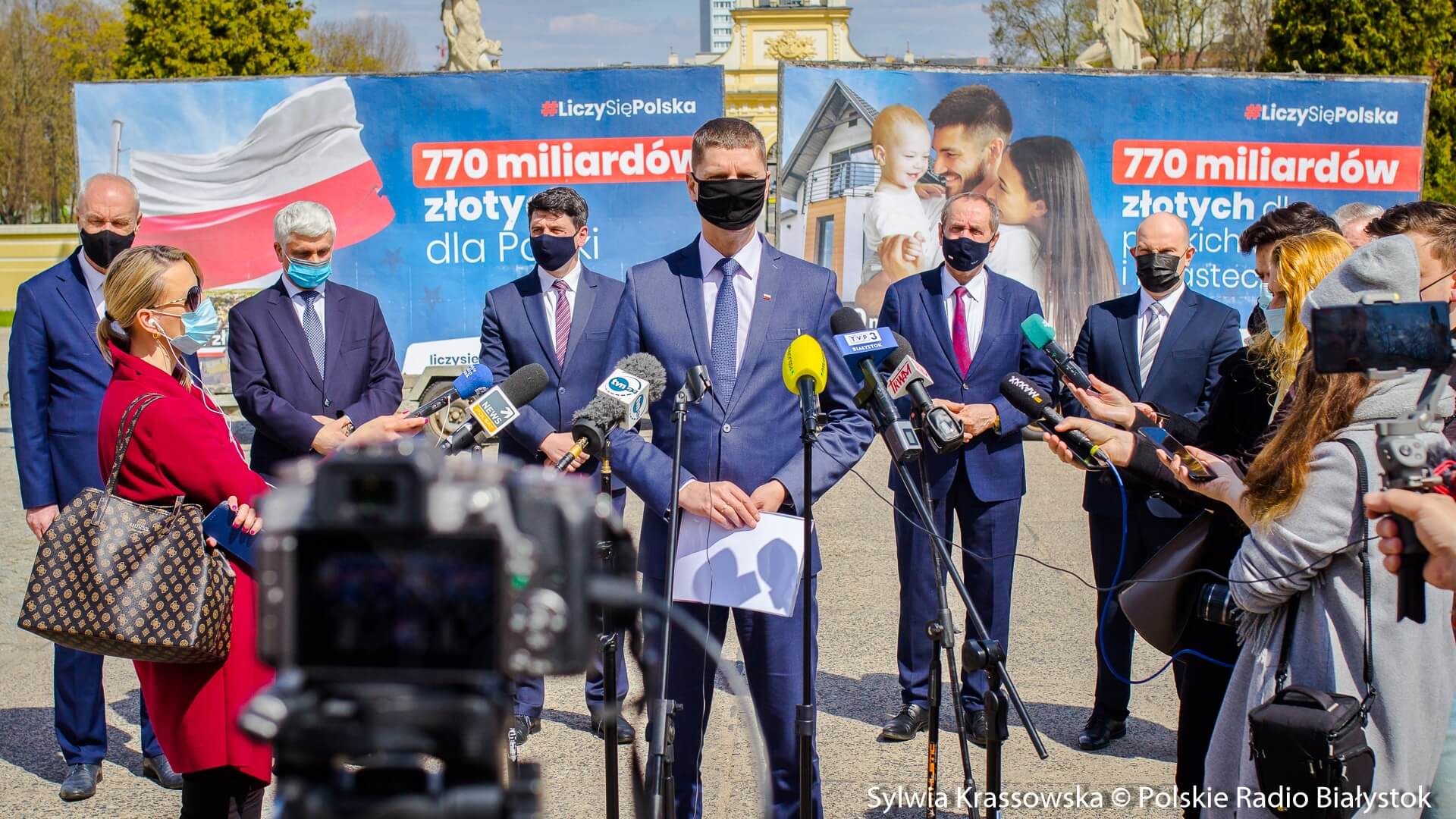 Białostocka konferencja polityków PiS zorganizowana została na dziedzińcu Pałacu Branickich, w ramach rządowej akcji #LiczySięPolska, dotyczącej 770 mld zł środków unijnych.