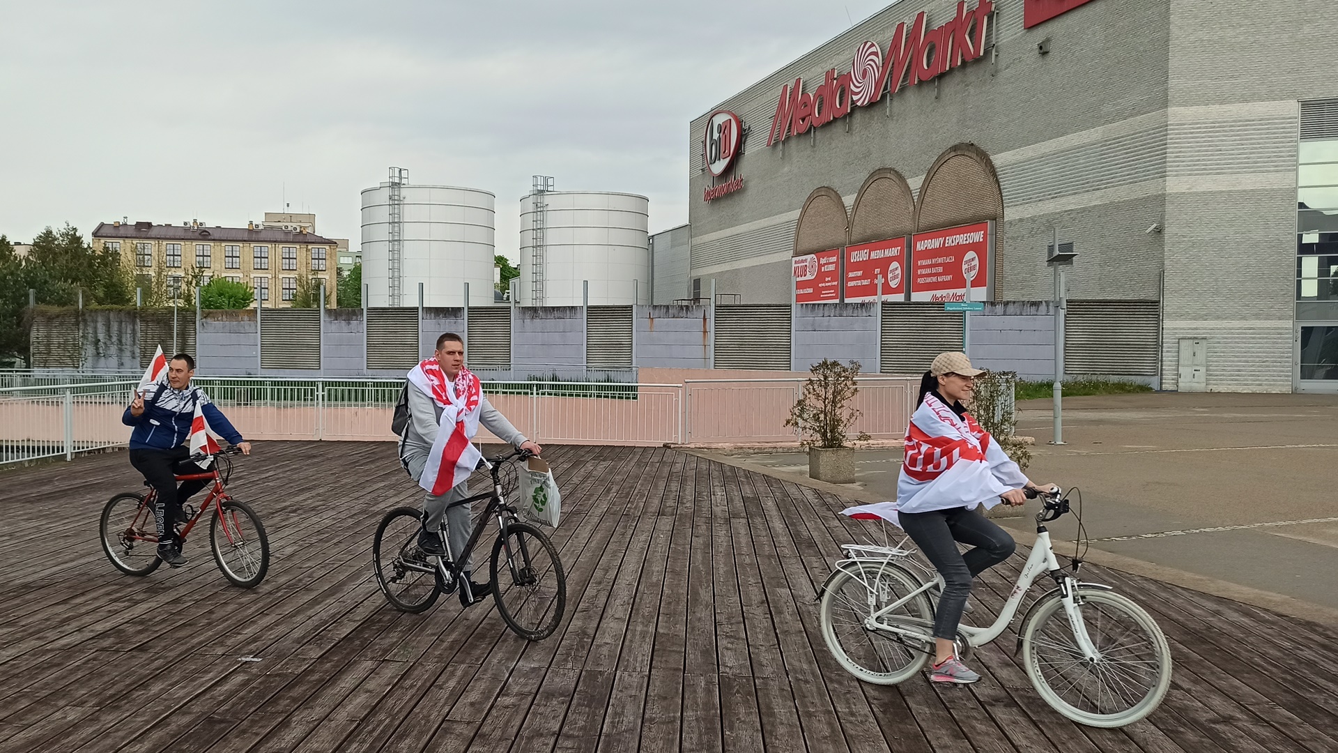 Mieszkający w Białymstoku Białorusini zorganizowali wspólny przejazd rowerowy ulicami miasta, by zwrócić uwagę na represje za wschodnią granicą.