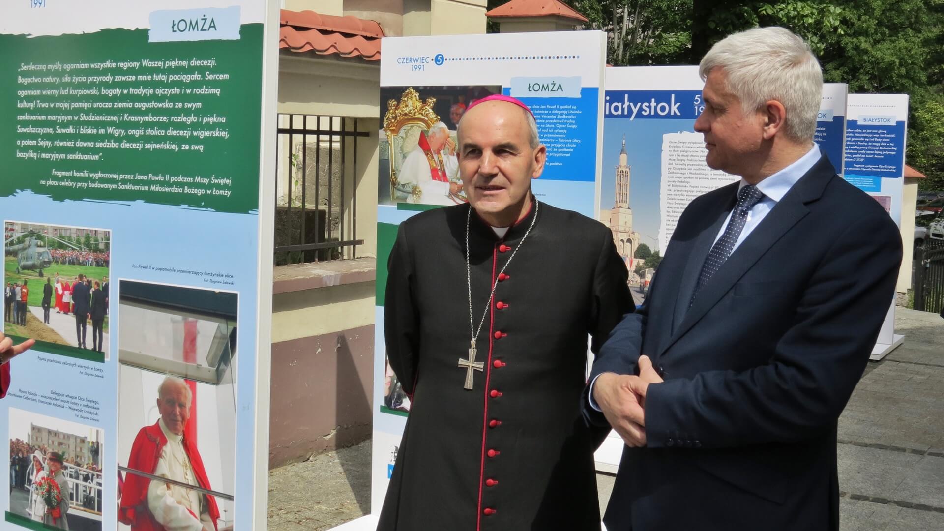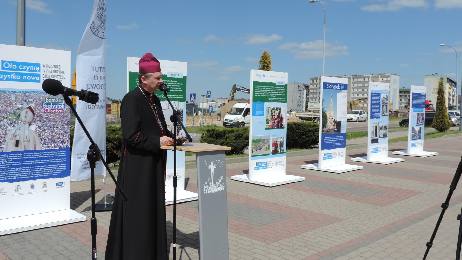 Administrator Archidiecezji Białostockiej bp Henryk Ciereszko przypomniał, że w czasie pobytu w Białymstoku w 1991 roku Jan Paweł II ustanowił diecezję białostocką (od marca 1992 roku podniesioną do rangi archidiecezji). Mówił, że taka wystawa jest potrzebna, zwracał uwagę na jej aspekt edukacyjny, zwłaszcza dla młodego pokolenia. "Abyśmy żyli tym, co nam pozostawił Ojciec Święty w swoim nauczaniu, gestach wobec nas" - mówił bp Ciereszko.