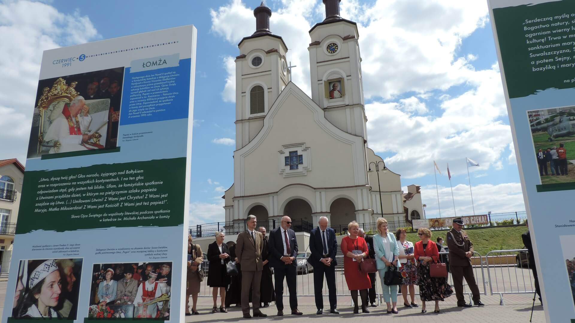 Wystawa, którą można oglądać na terenie przylegającym do budynku kina Ton w centrum miasta, nosi tytuł "Oto czynię wszystko nowe. W rocznicę IV Pielgrzymki Ojca Świętego do Ojczyzny". W Łomży Jan Paweł II był 4-5 czerwca 1991 roku, w Białymstoku 5 czerwca, zaś w Olsztynie 5-6 czerwca.