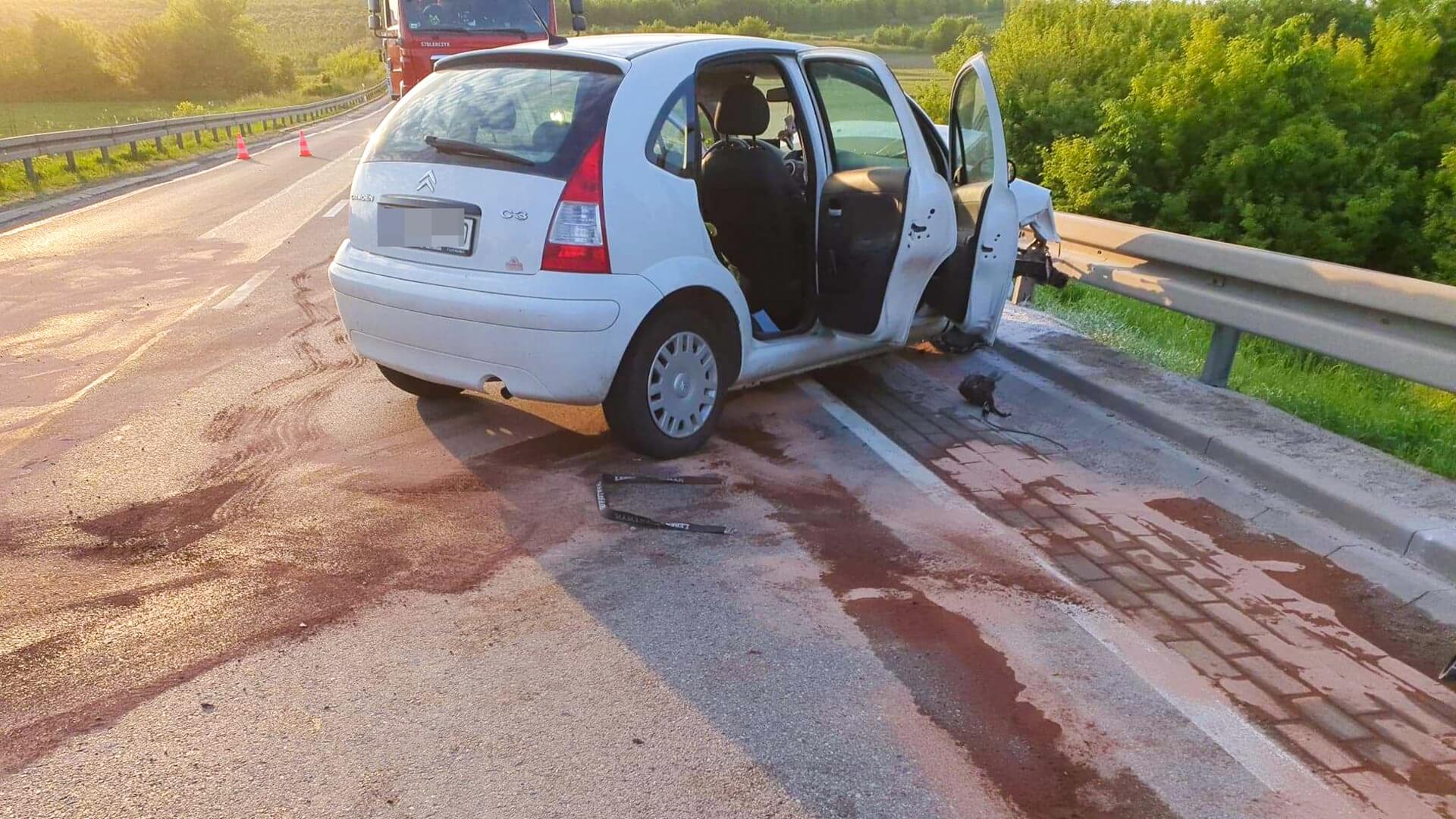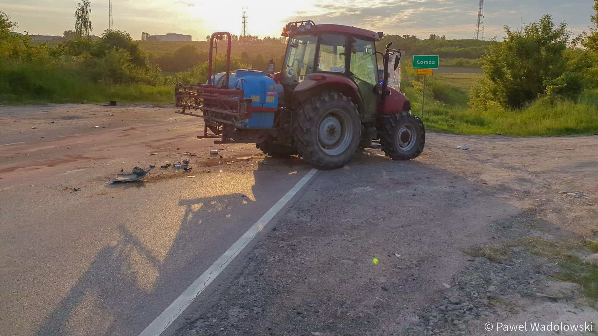 Radio Białystok | Wiadomości | Wiadomości - Samochód osobowy zderzył się z ciągnikiem - zablokowany był wjazd do Łomży od strony Zambrowa