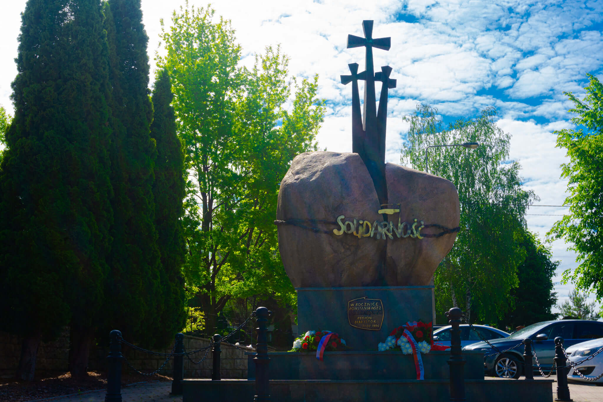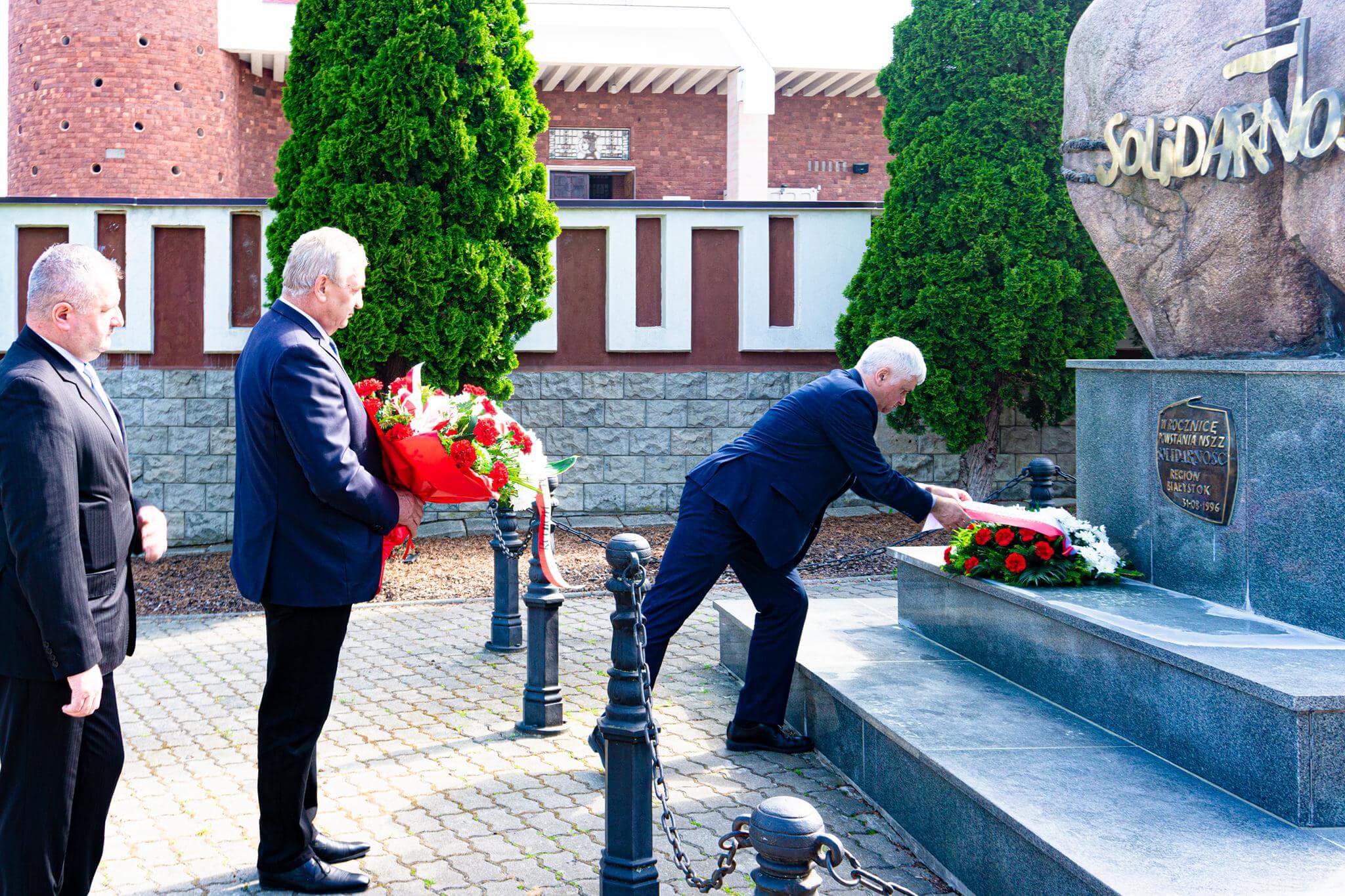 Wojewoda podlaski złożył kwiaty przed pomnikiem Solidarności