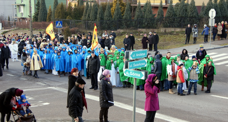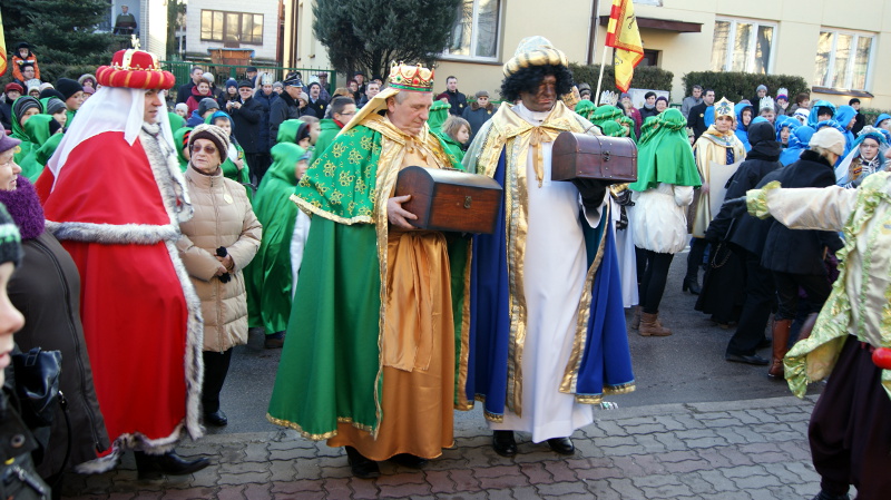 W tym roku w postaci mędrców: Kacpra, Melchiora i Baltazara, podróżujących na występujących w rolach wierzchowców samochodach terenowych, wcielili się parafianie, a towarzyszył im liczny orszak pasterzy i aniołów oraz królów w papierowych koronach.