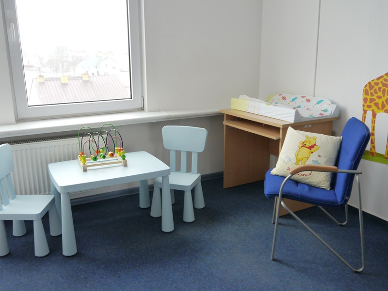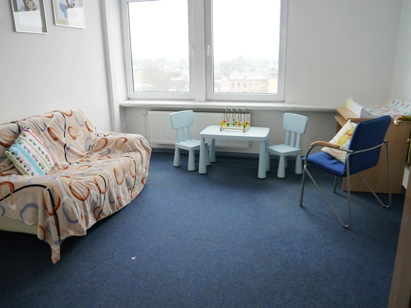 Jedną z sal przeznaczyły na pokój rodzinny, w którym znaleźć można wszystko, co jest niezbędne do opieki nad niemowlakami, ale też starszymi dziećmi - wygodną kanapę do karmienia, przewijak czy zabawki.