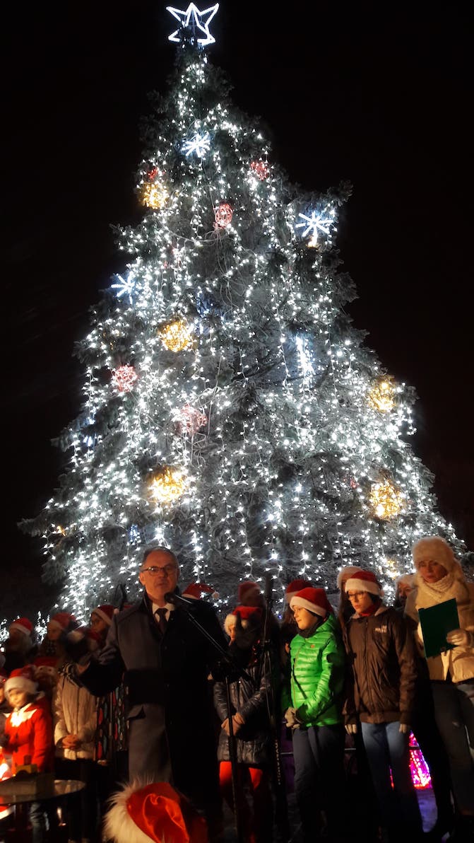 Miejska choinka rozbłysła w środę (6.12) w Suwałkach. Mieszkańcy mieli okazję wspólnie zaśpiewać kolędy, czy odebrać słodkie upominki od władz miasta. Lampki na choince włączył prezydent Suwałk Czesław Renkiewicz.