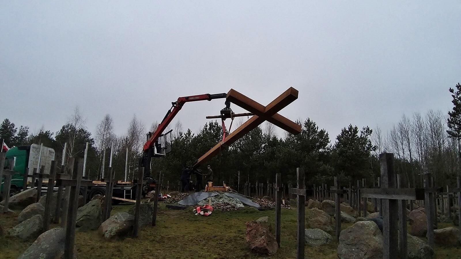 Na wzgórzu w Gibach robotnicy ustawili w sobotę (14.12) nowy 10-metrowy krzyż poświęcony ofiarom obławy augustowskiej. Stary, częściowo spróchniały został wcześniej zdemontowany i stanie w innym miejscu.